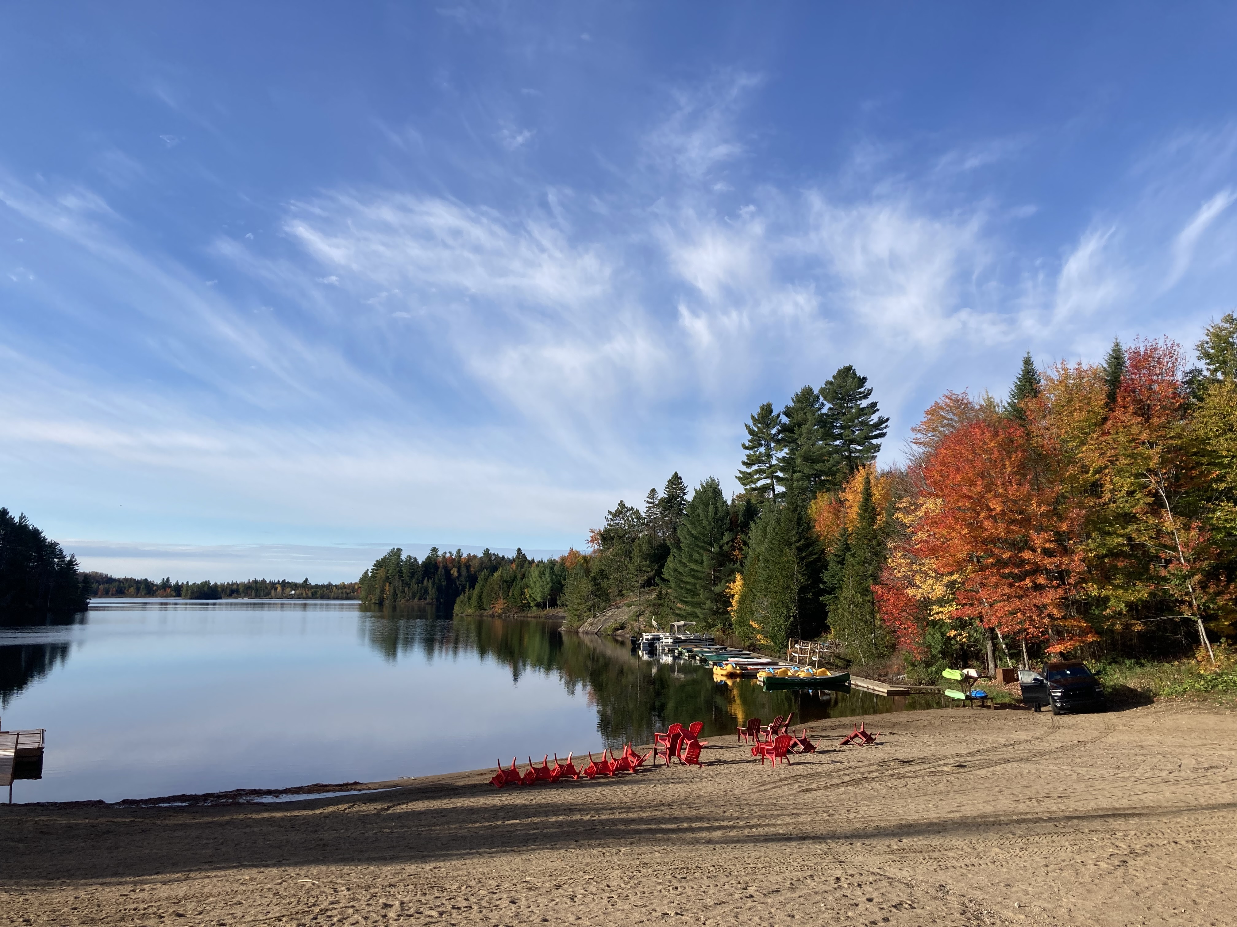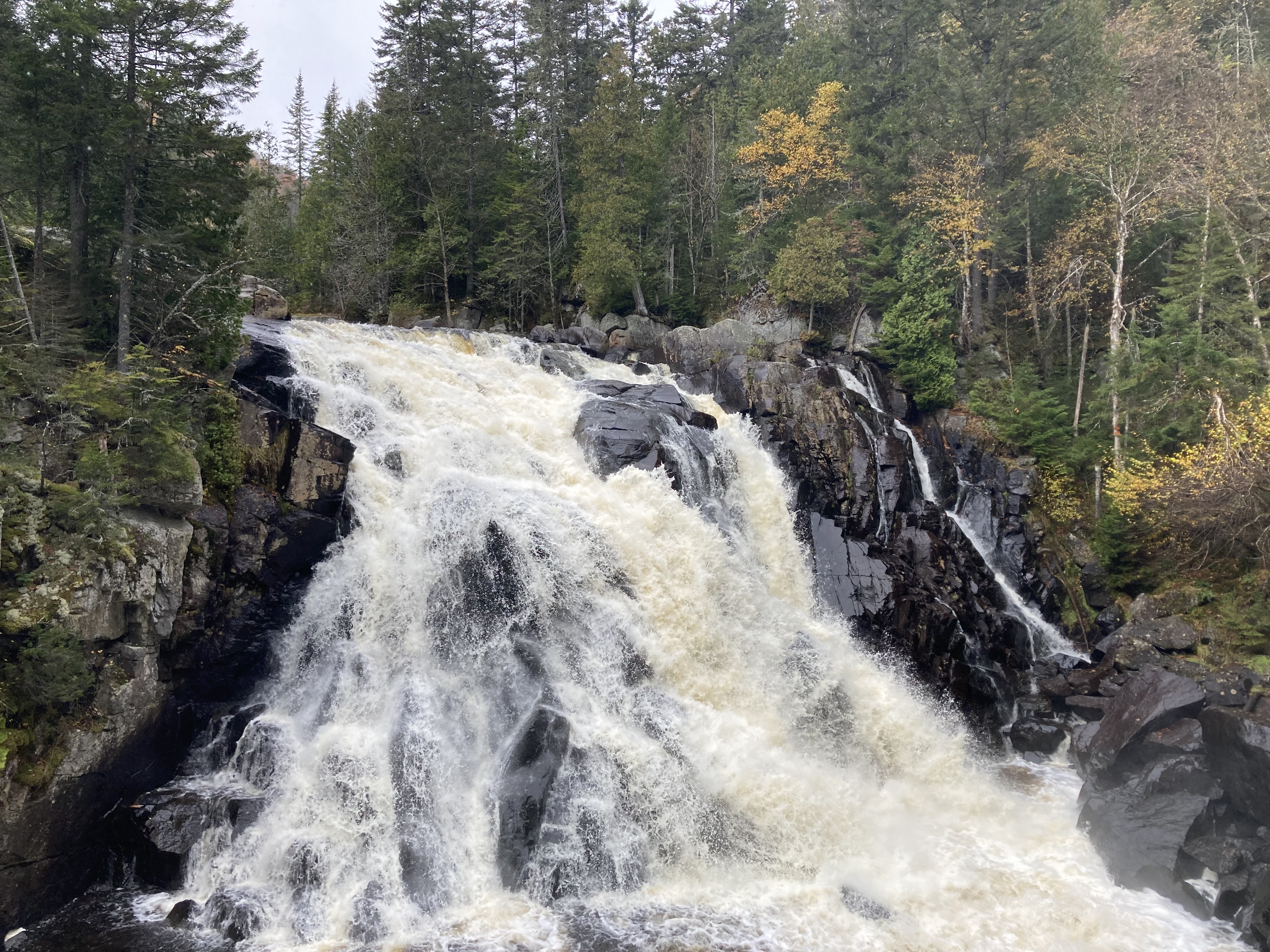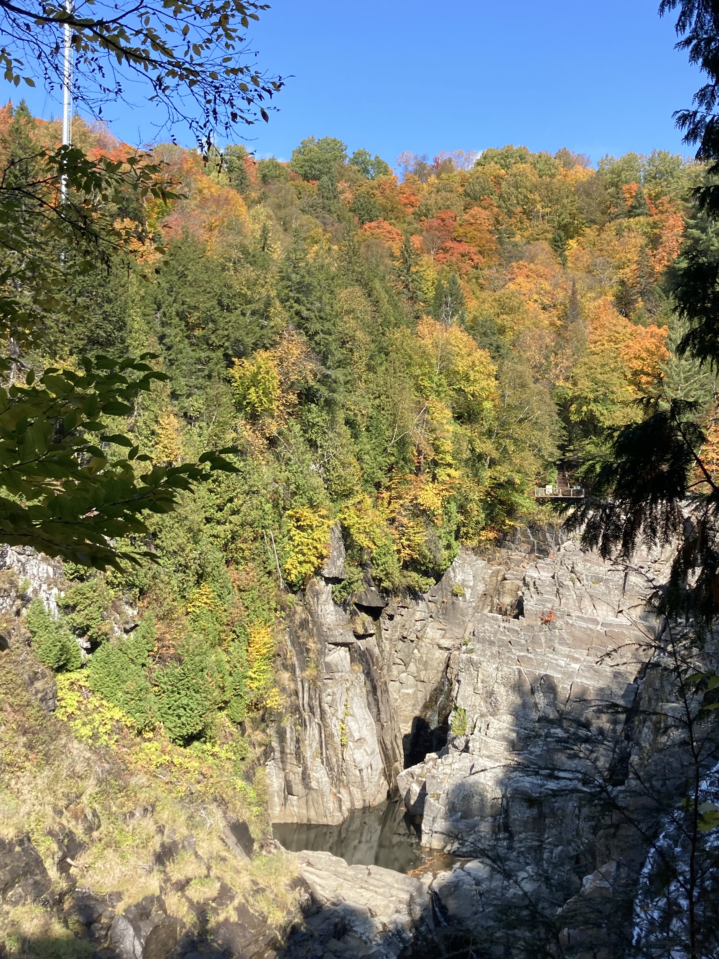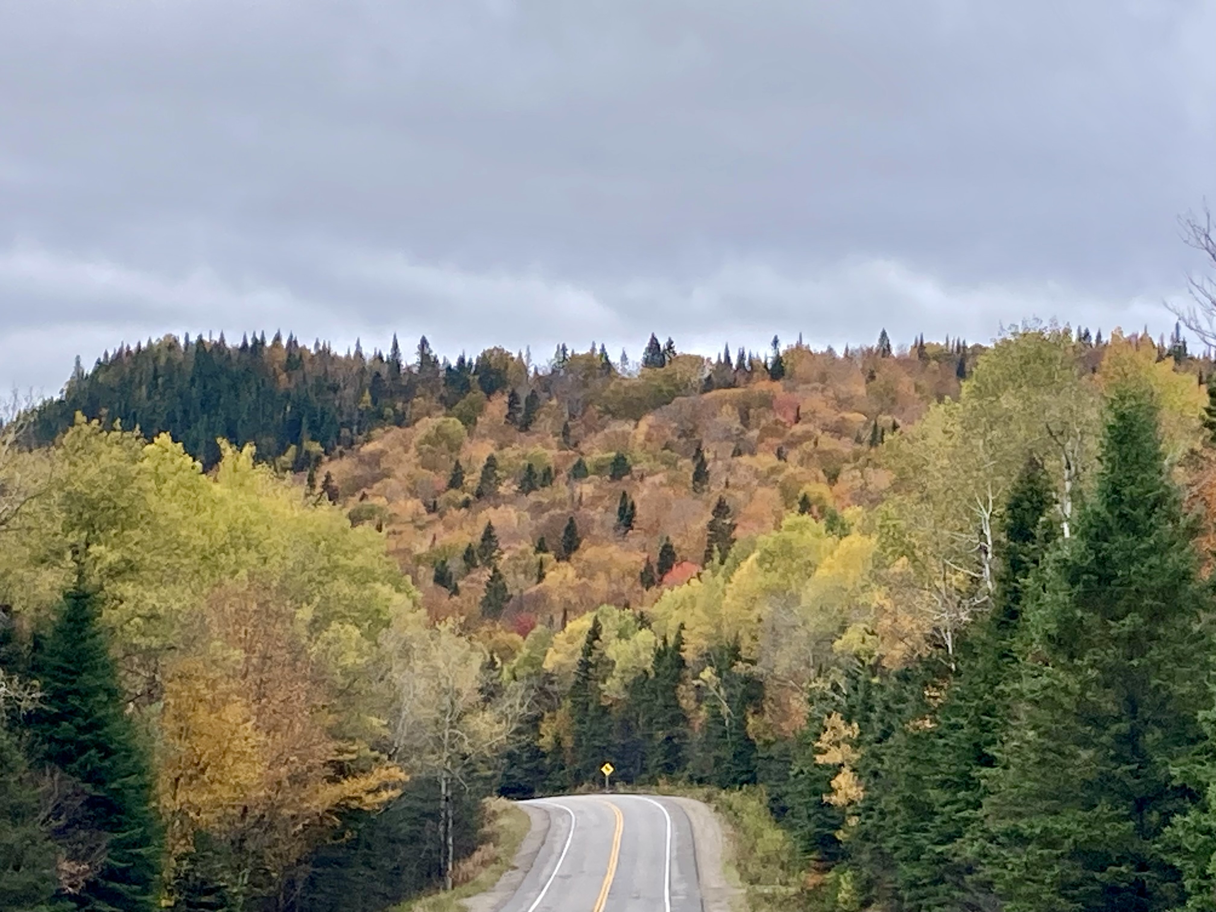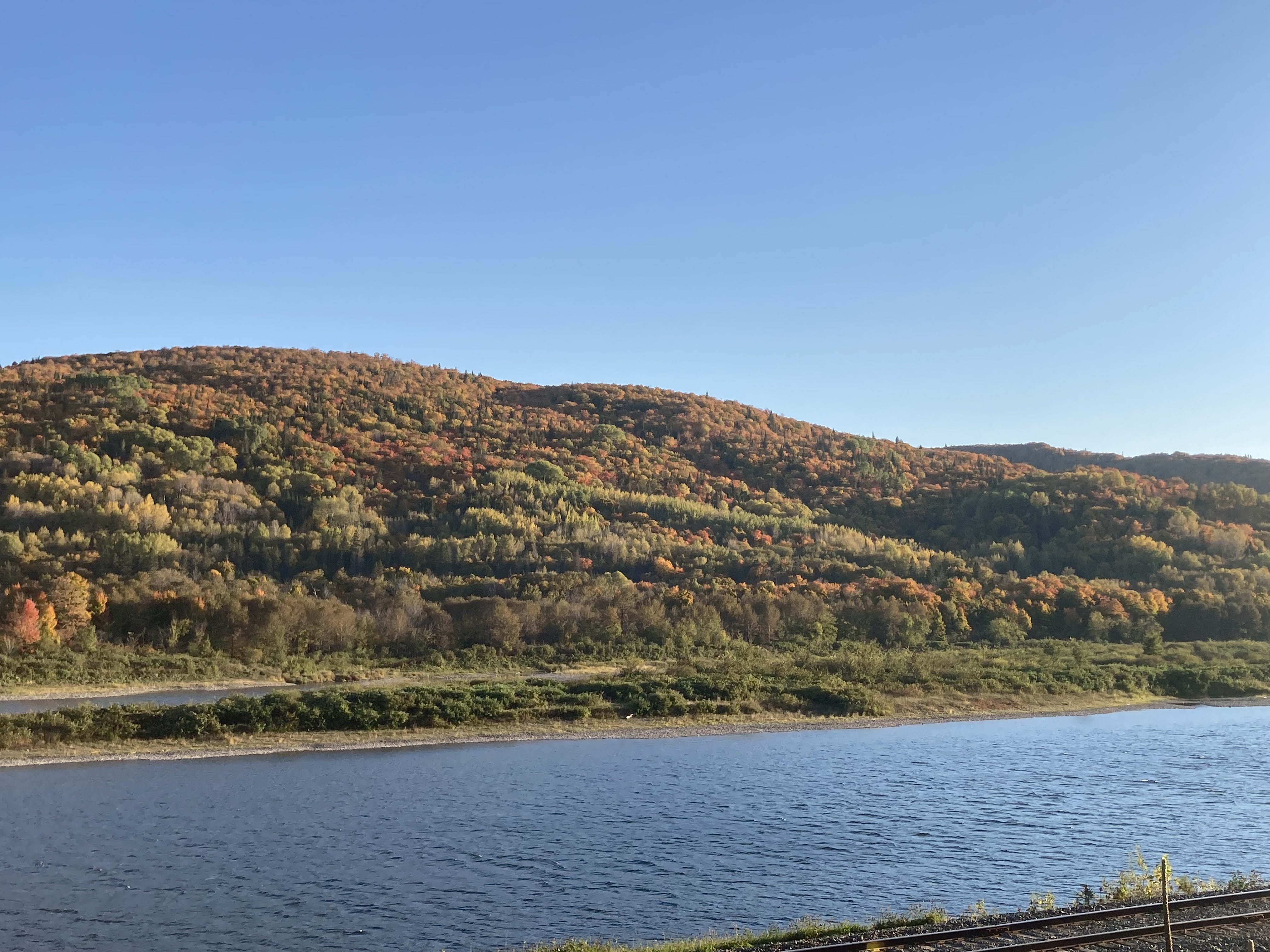 Ensuite, nous avons fait la route jusqu’à Chicoutimi avec un arrêt à Sainte-Rose-du-Nord. Nous nous sommes arrêtés régulièrement sur la route car les paysages avec les lacs et les arbres de toutes les couleurs étaient magnifiques malgré le temps couvert.