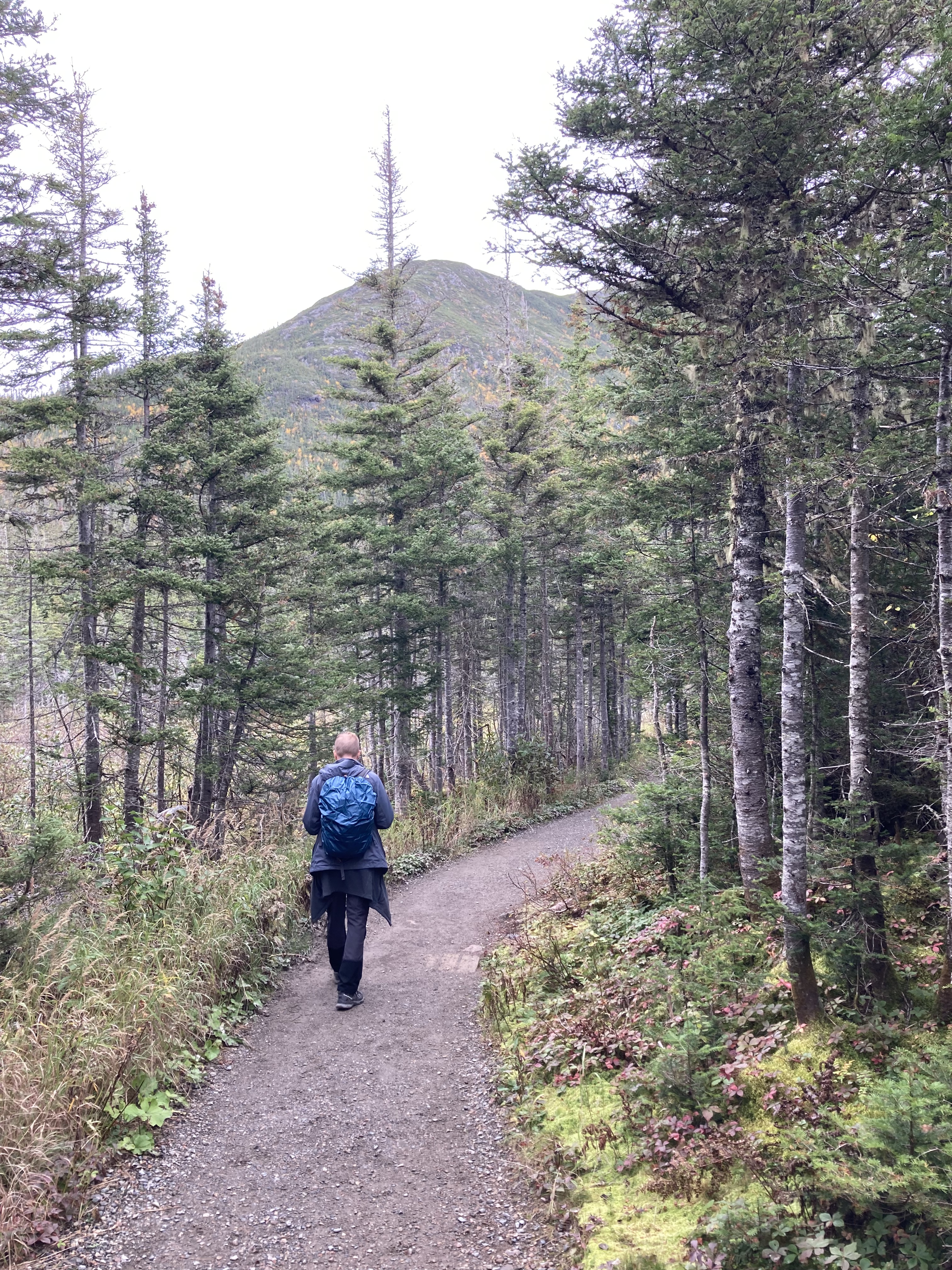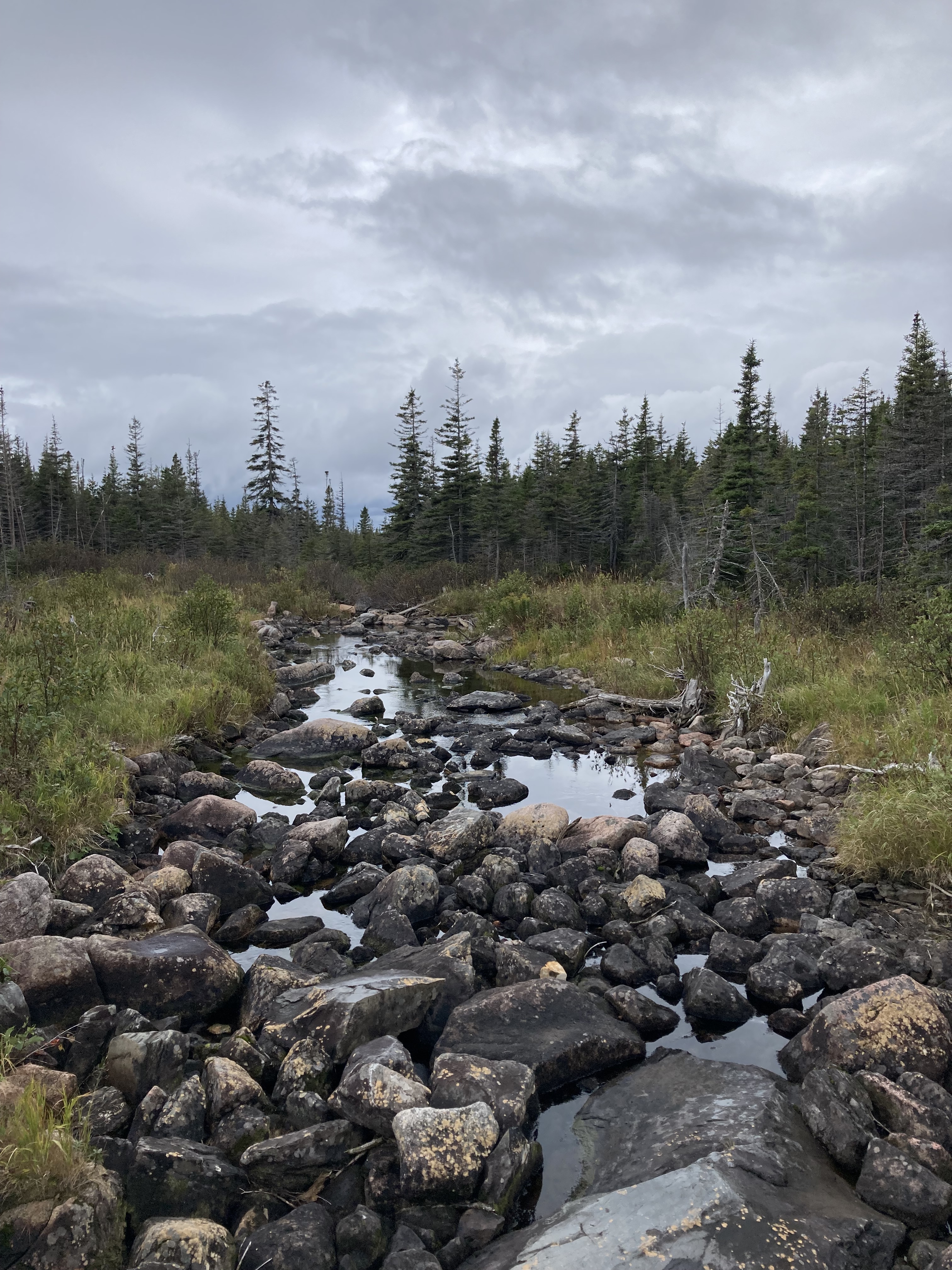 Ce matin, départ de Chicoutimi sous un temps couvert direction le Parc National des Grands Jardins. Notre but était de faire la randonnée du Sentier du Pioui.