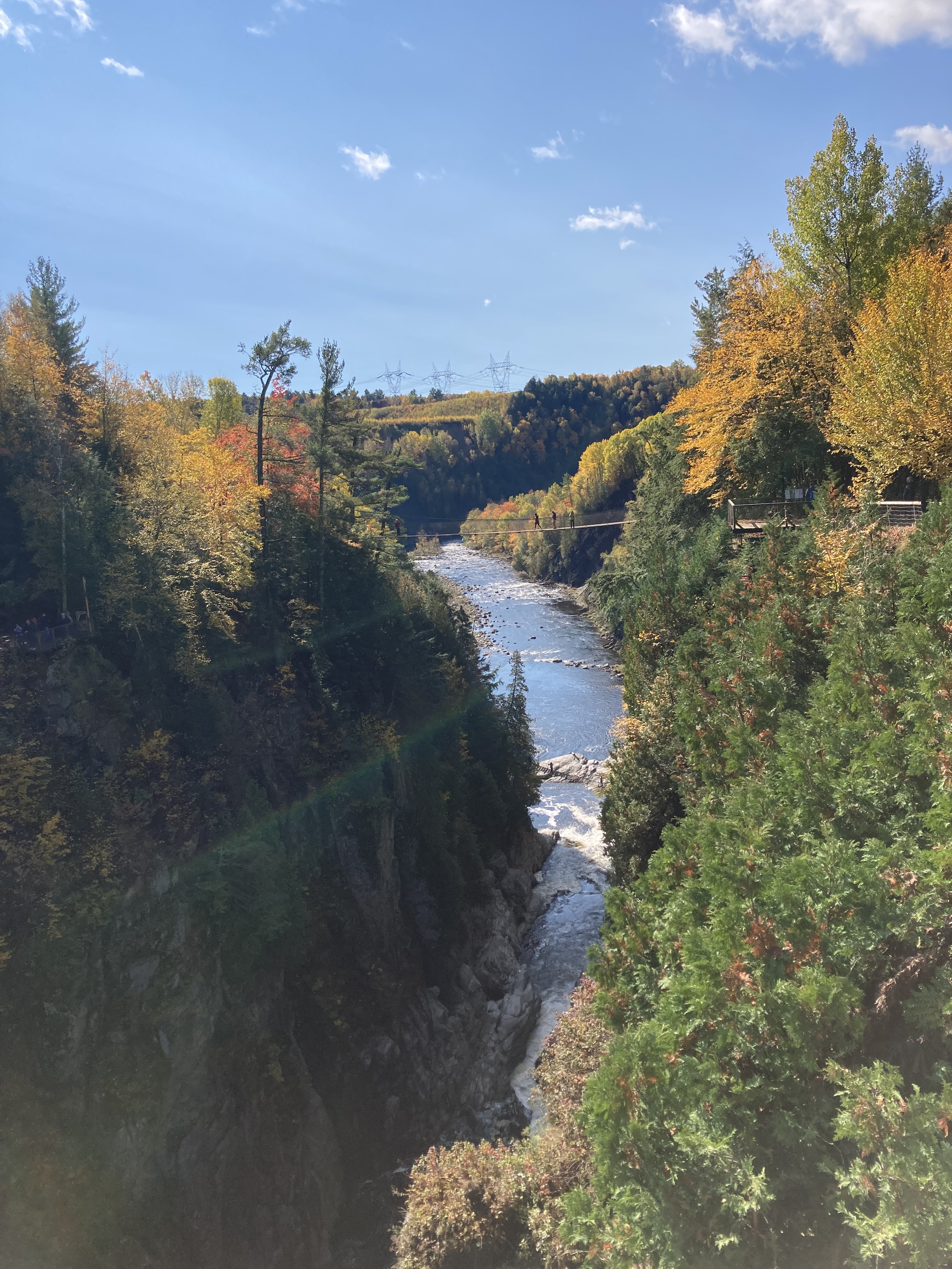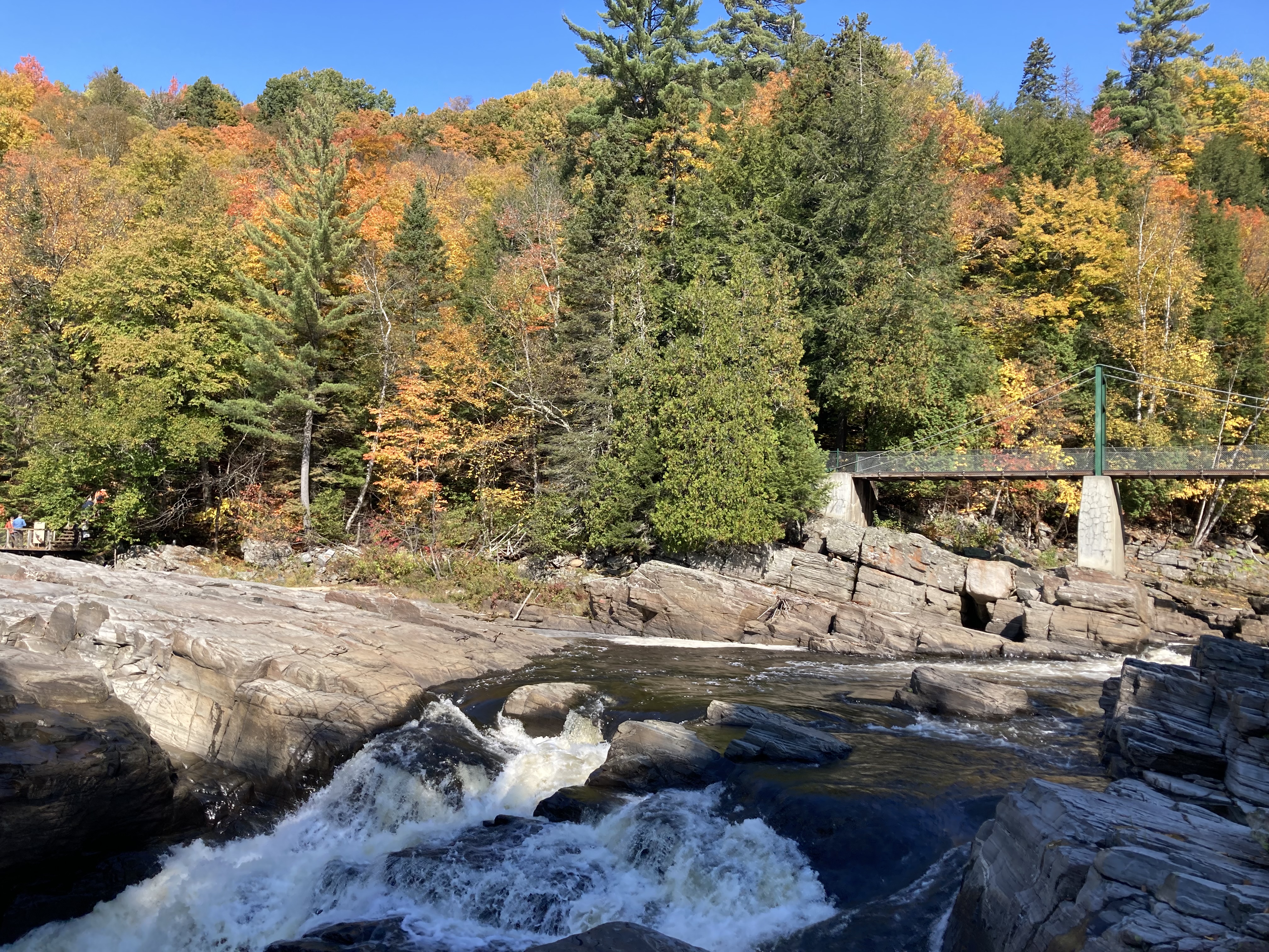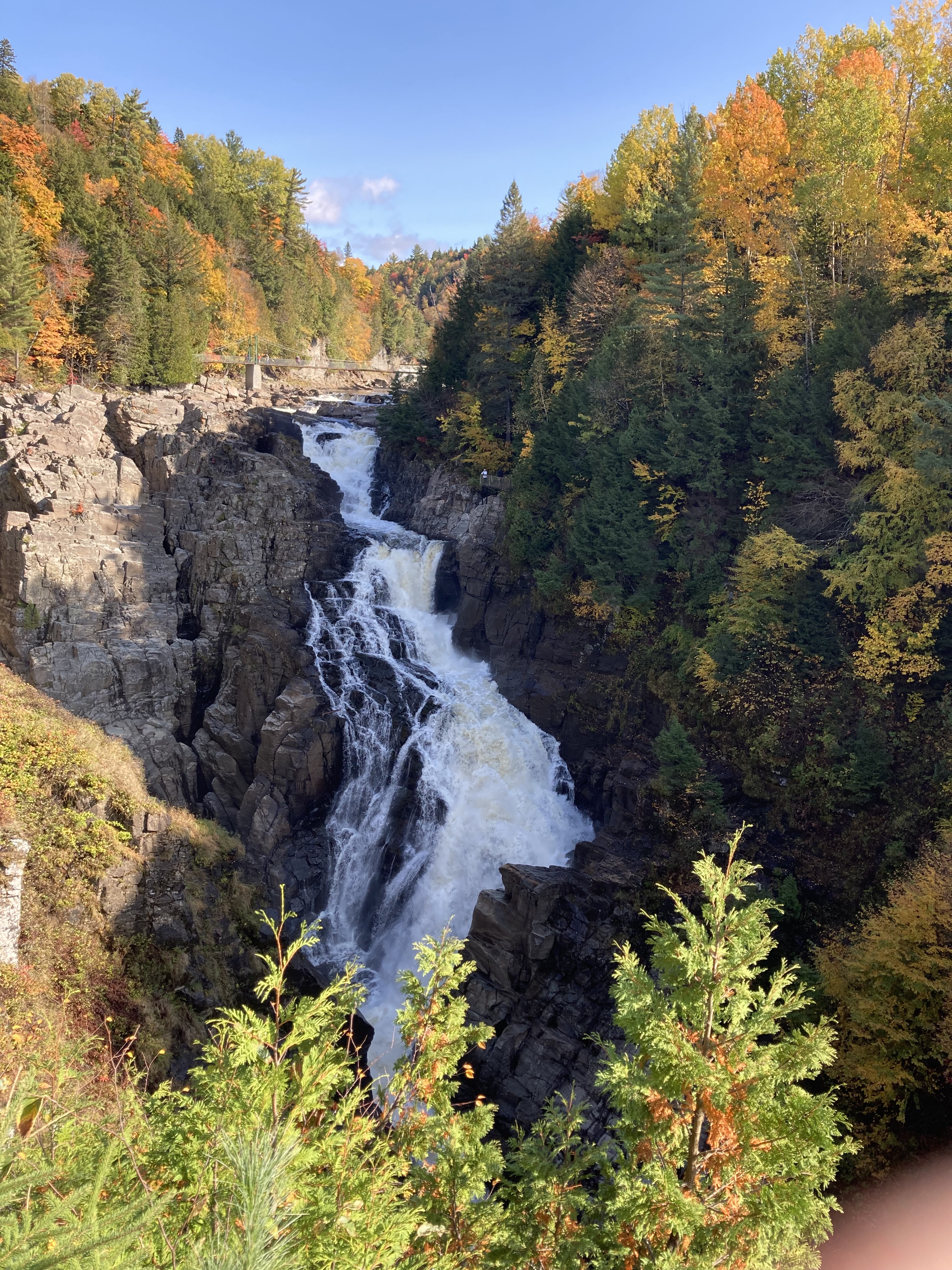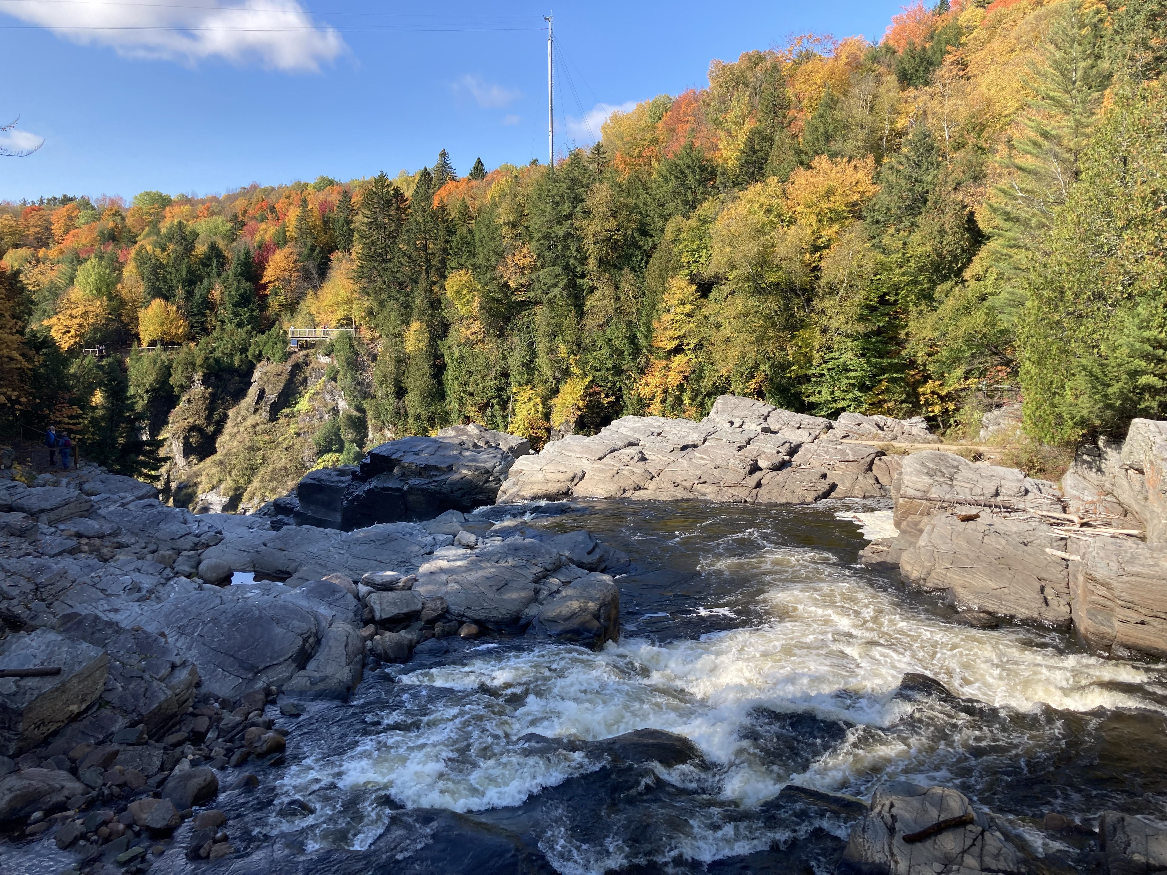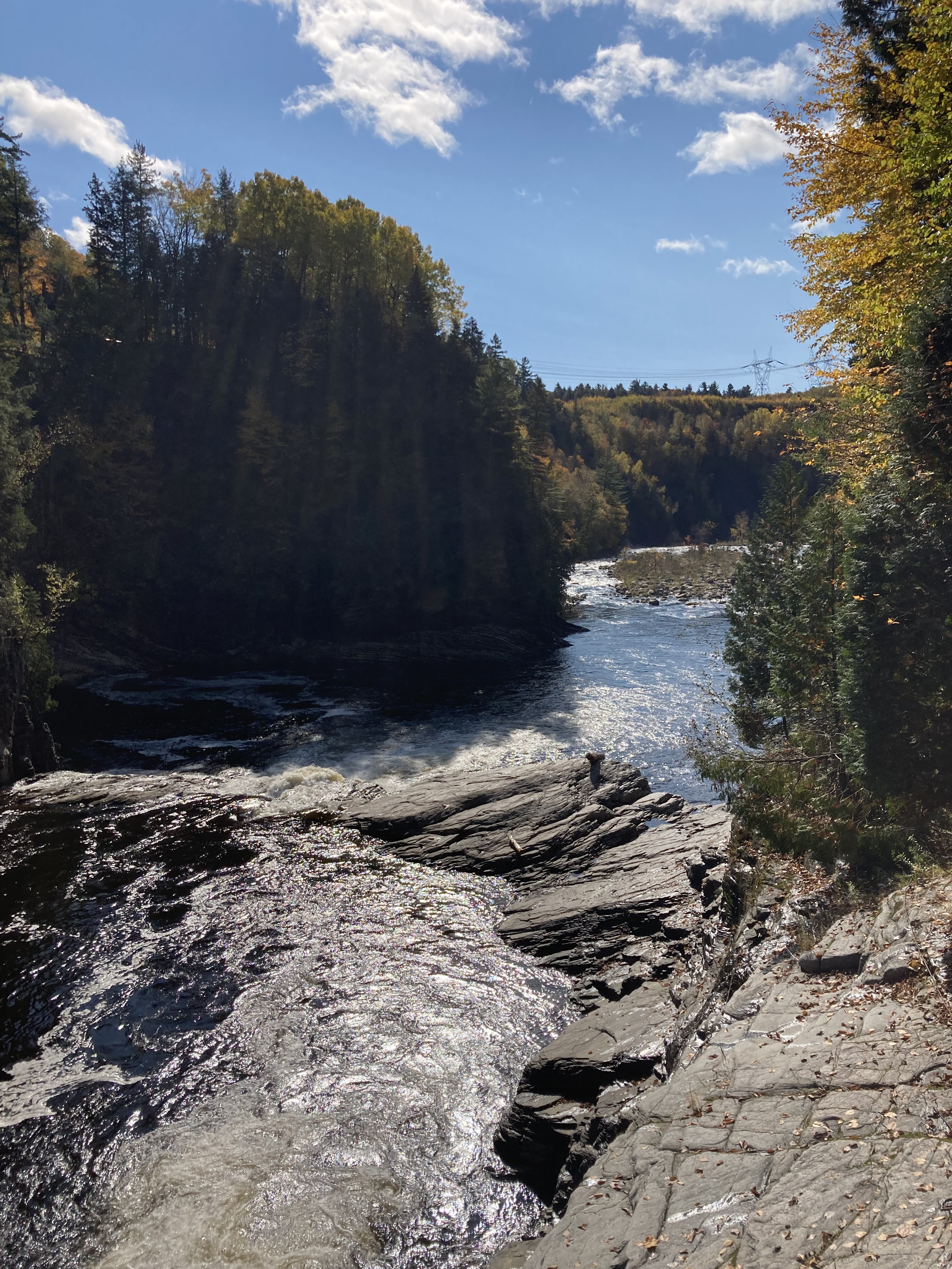 Chute Sainte-Anne : nous nous sommes garés au petit parking tout près de la chute, puis nous avons marché un petit moment le long de la rivière.