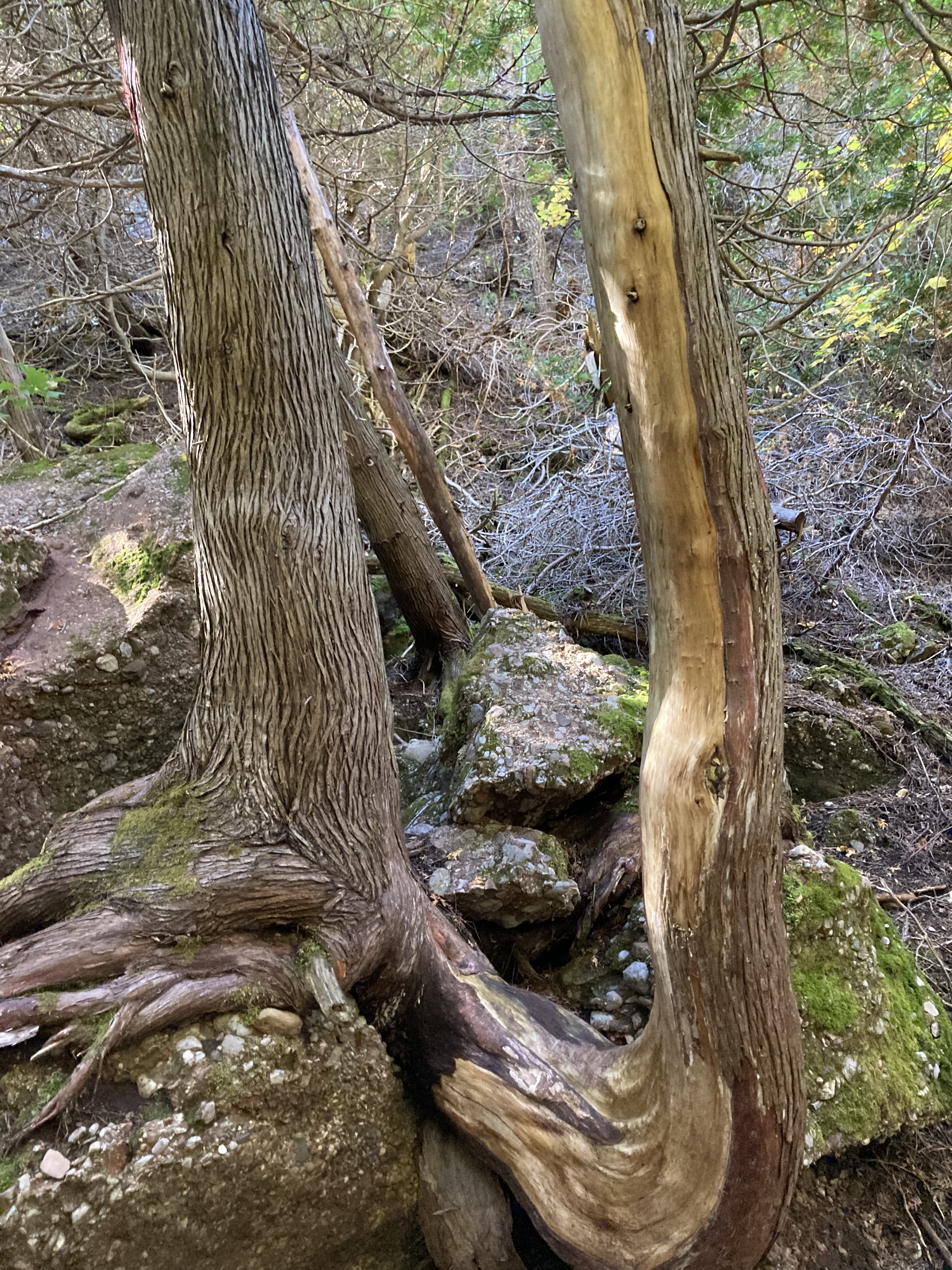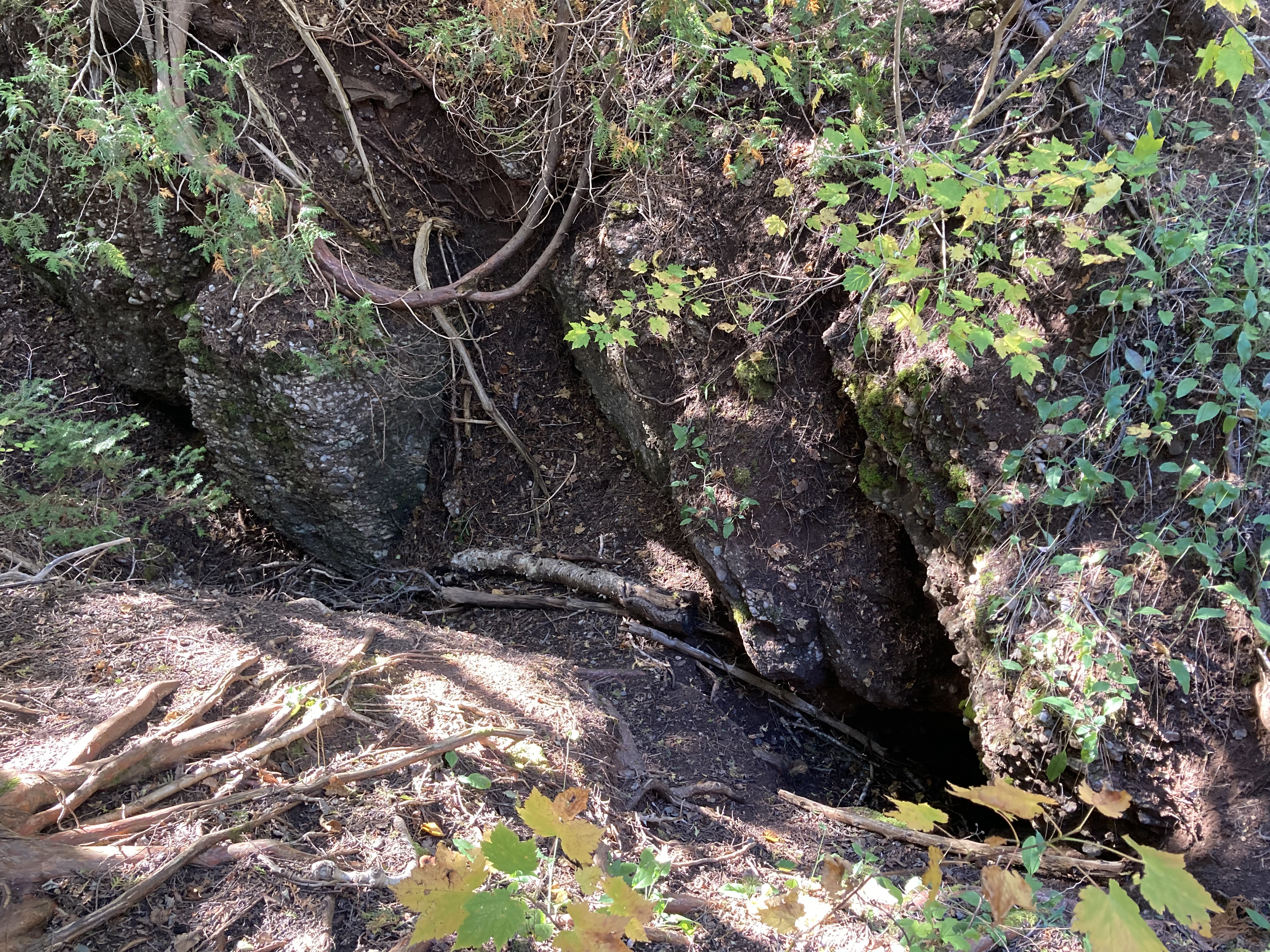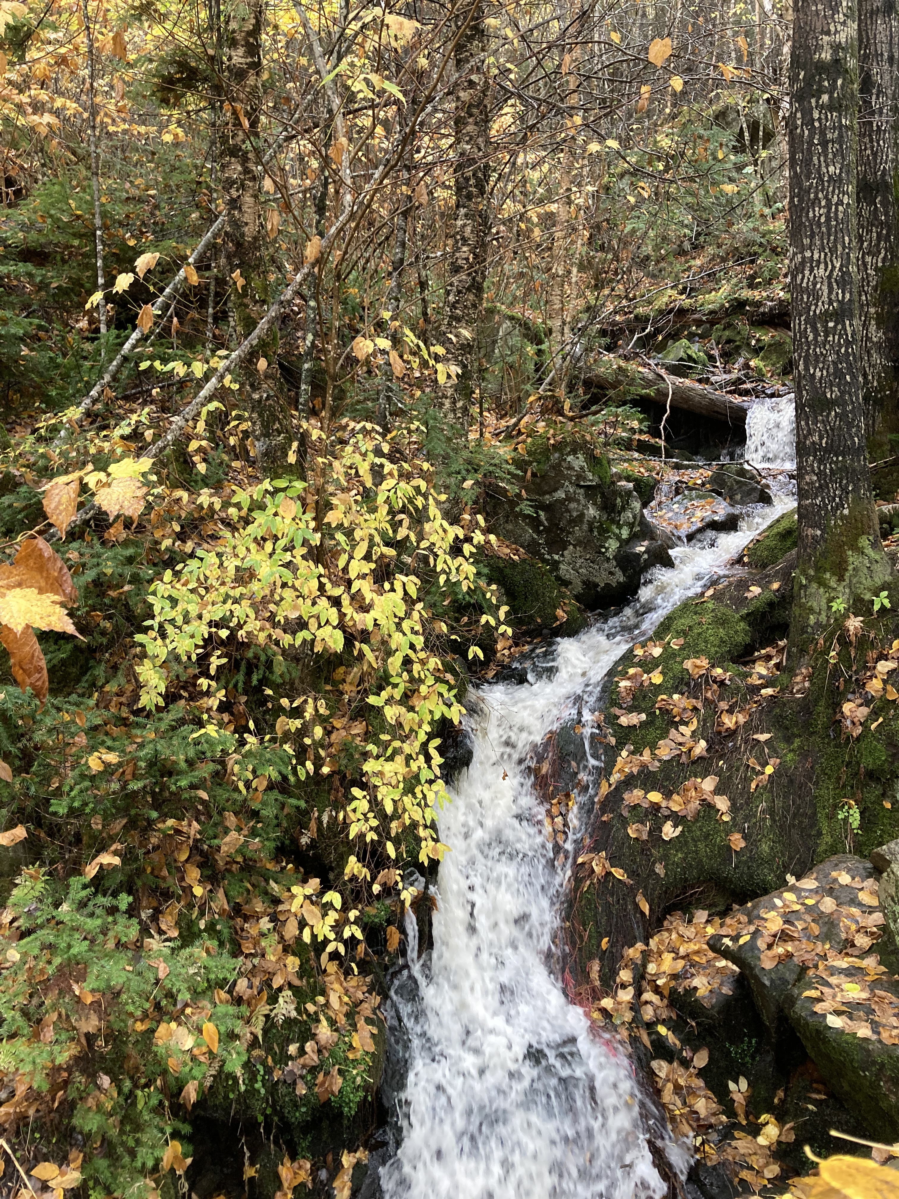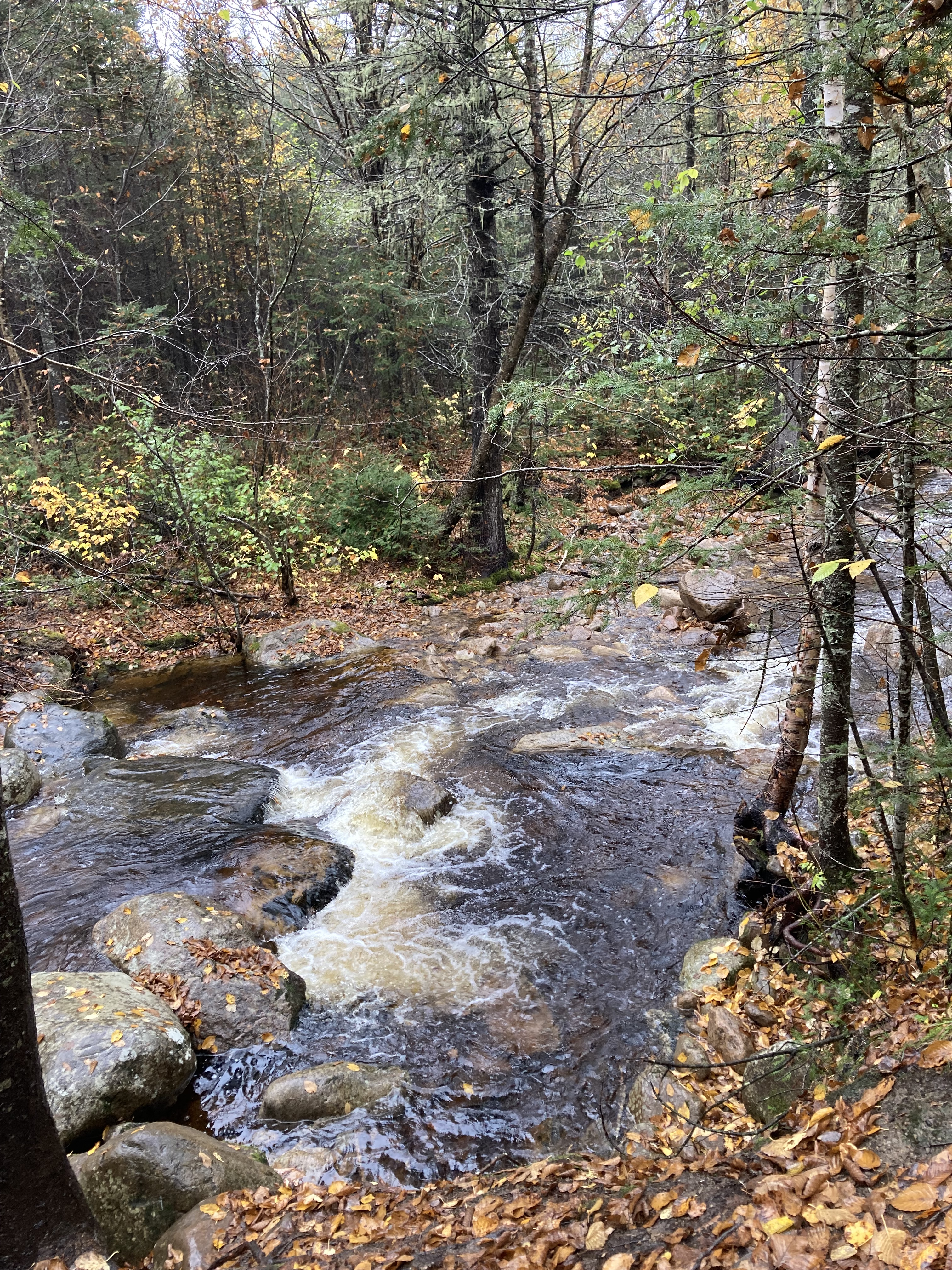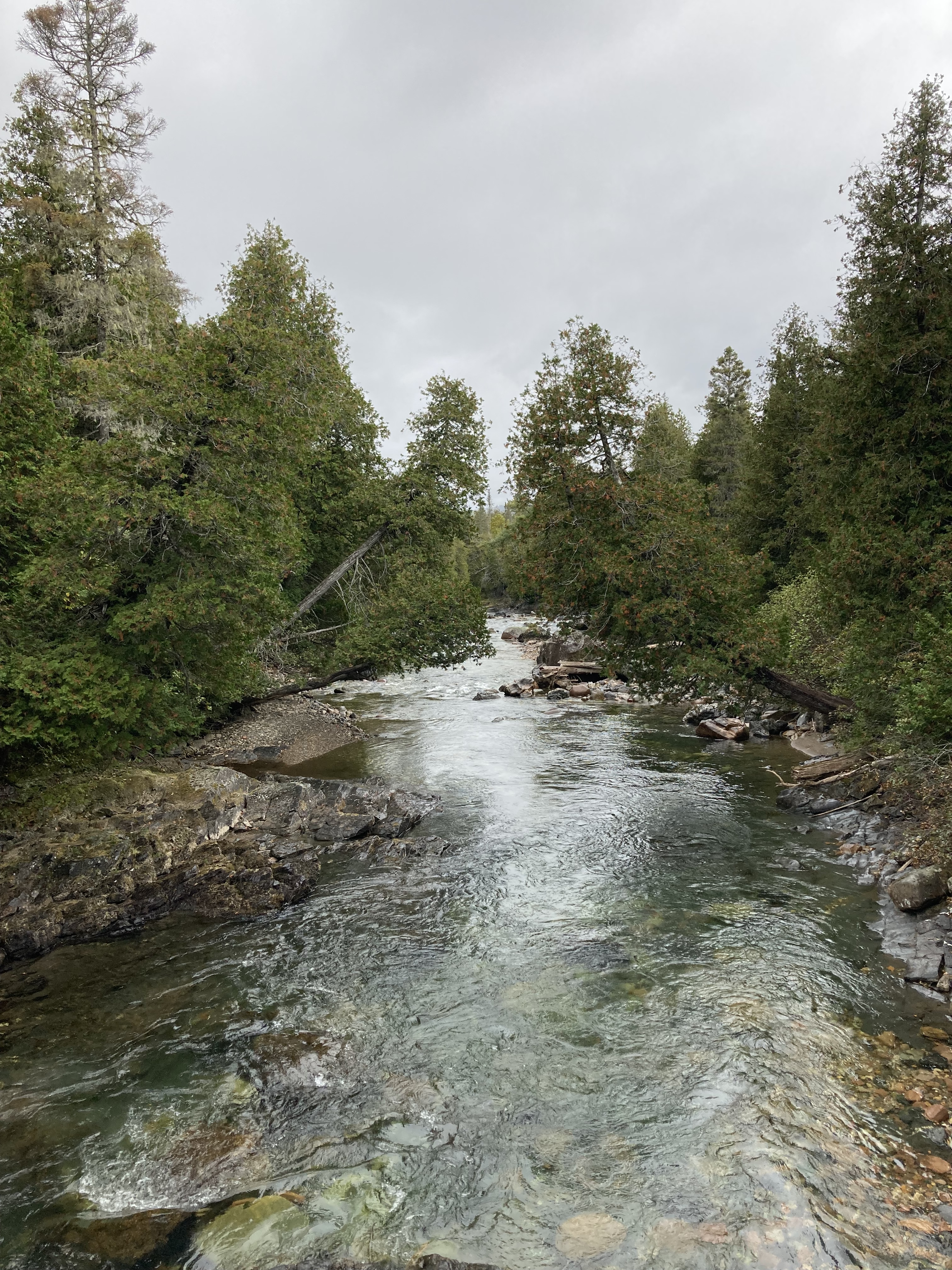 Chute Sainte-Anne : nous nous sommes garés au petit parking tout près de la chute, puis nous avons marché un petit moment le long de la rivière.