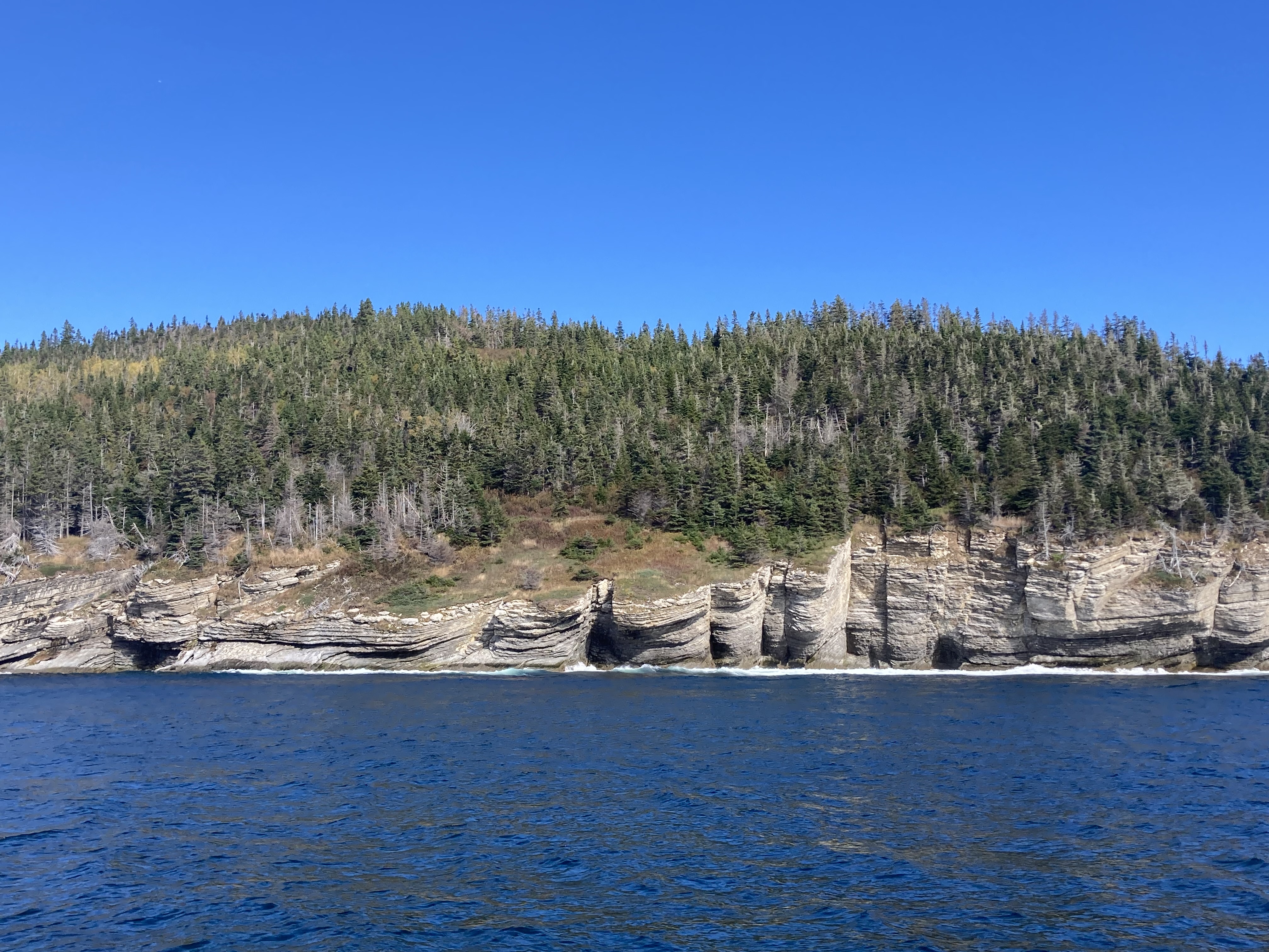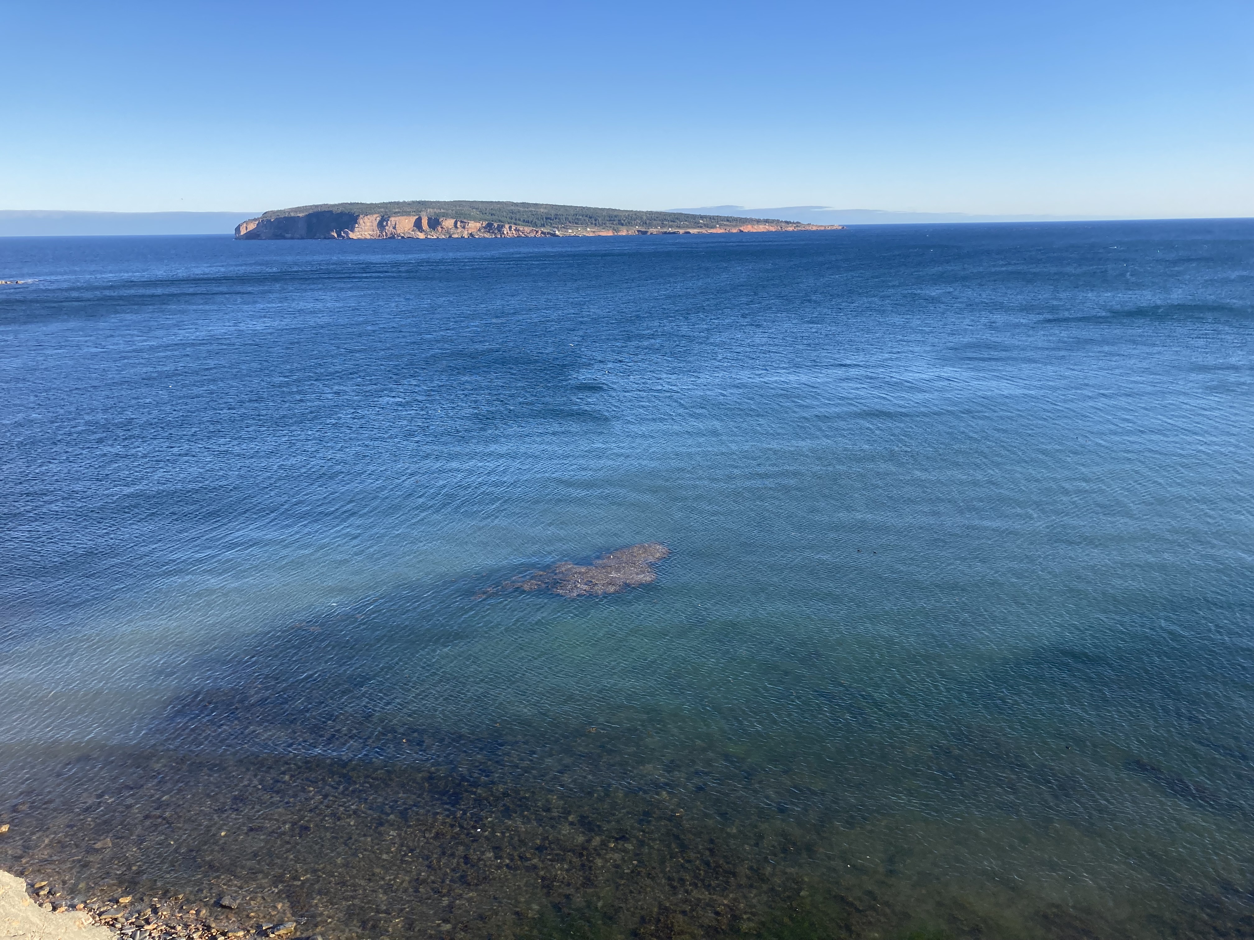 Ensuite, nous sommes partis faire la randonnée du Bout du monde, un peu plus de 8 km à partir de l’Anse-aux-Amérindiens (environ 2h30 de marche). Très jolie randonnée avec un beau phare à la fin et ensuite la descente (et la remontée !!) au point de vue du bout du monde. On a pu y observer des phoques nageants.