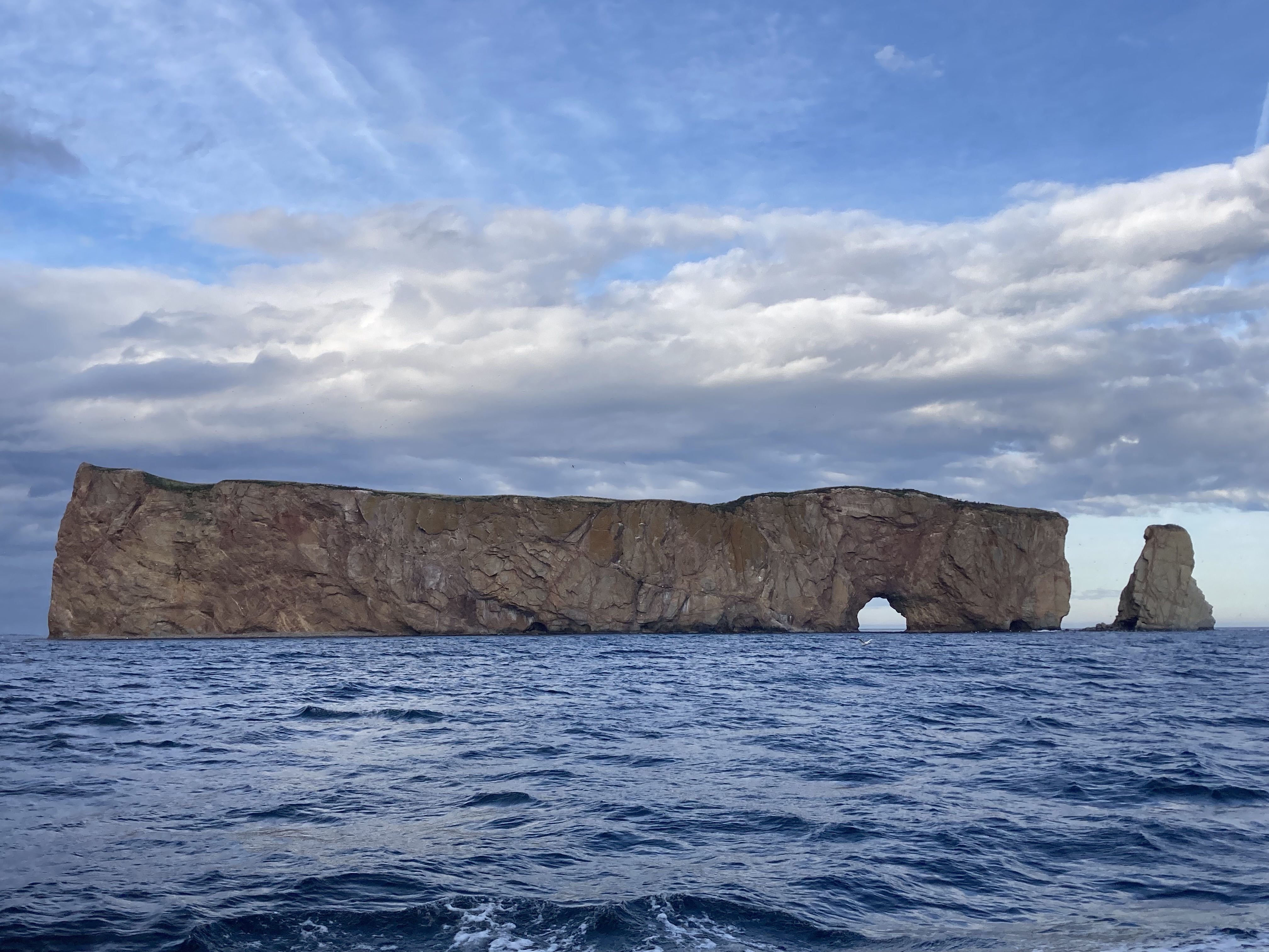 Nous avons donc filé sur Percé. À l’office de tourisme, la personne nous a indiqué qu’il y avait une prévision de vent fort pour demain et que, de ce fait, il n’y aurait pas de bateau pour aller sur l’île Bonaventure. Nous avons donc décider de prendre le dernier qui partait à 12h30.