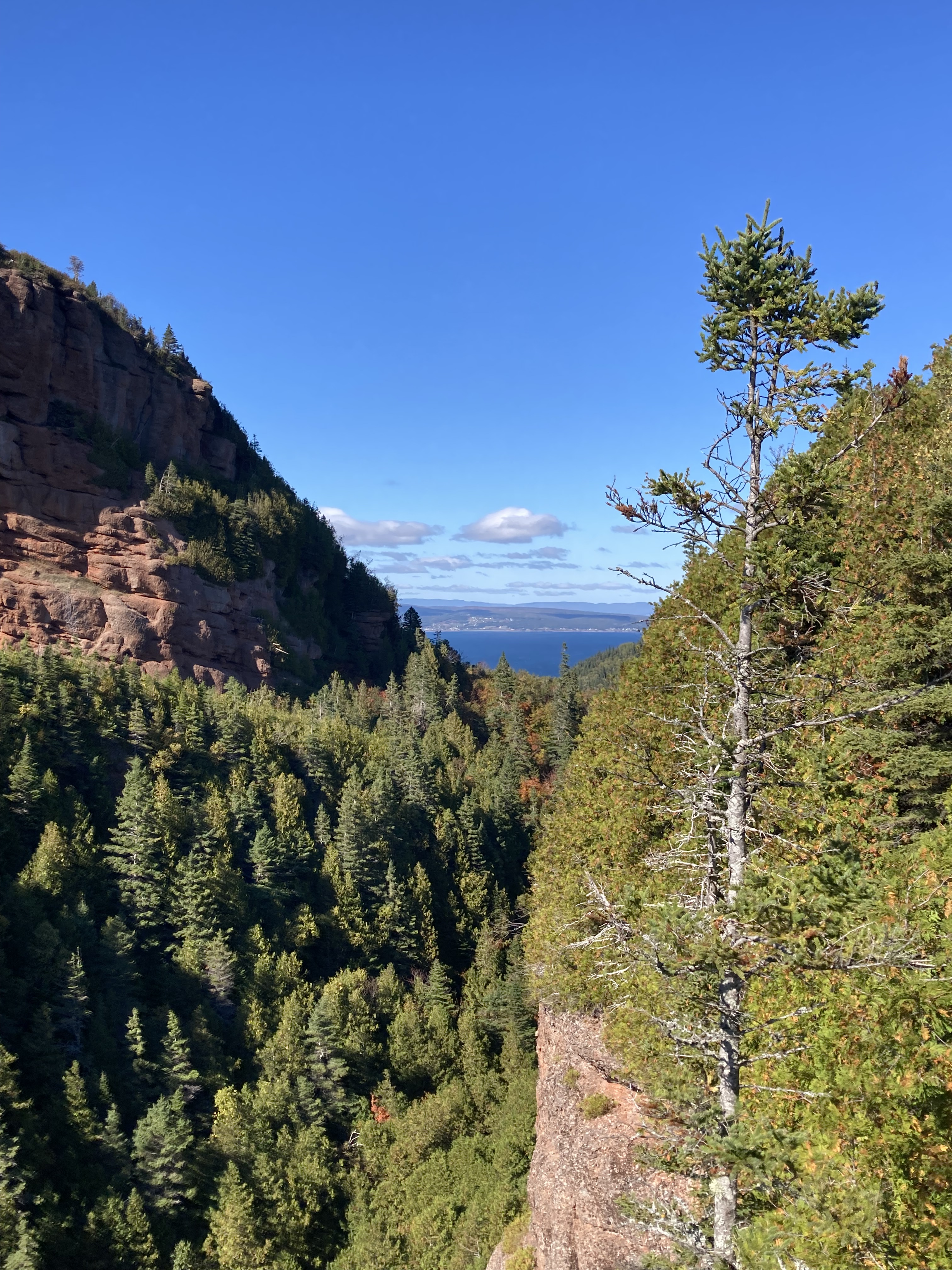 Ce matin, nous sommes partis randonner dans le Parc National du Bic. Nous devions faire la randonnée du Pic Champlain mais après avoir échangé avec le gardien à l’entrée du parc, nous avons fait une autre randonnée sur ses conseils.