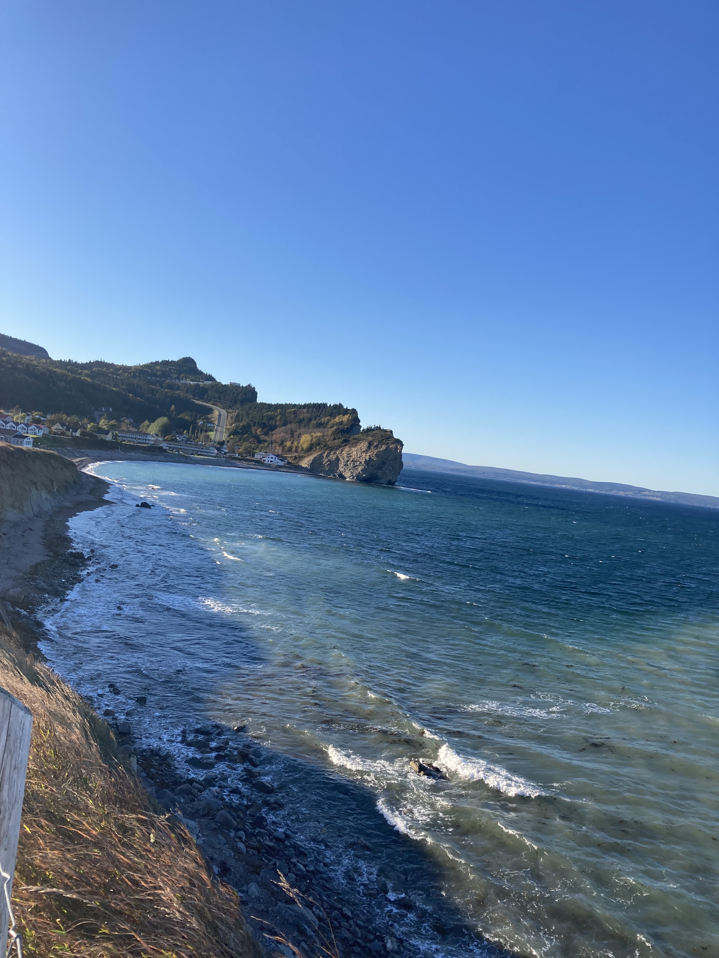 Départ ce matin de Gaspé’ direction Percé. Petit arrêt sur le chemin à Barachois. Il s’agit d’une étendue d’eau séparée de la mer par un cordon littoral de gravier, sable ou galets, laissant une passe qui permet les échanges avec le milieu marin.