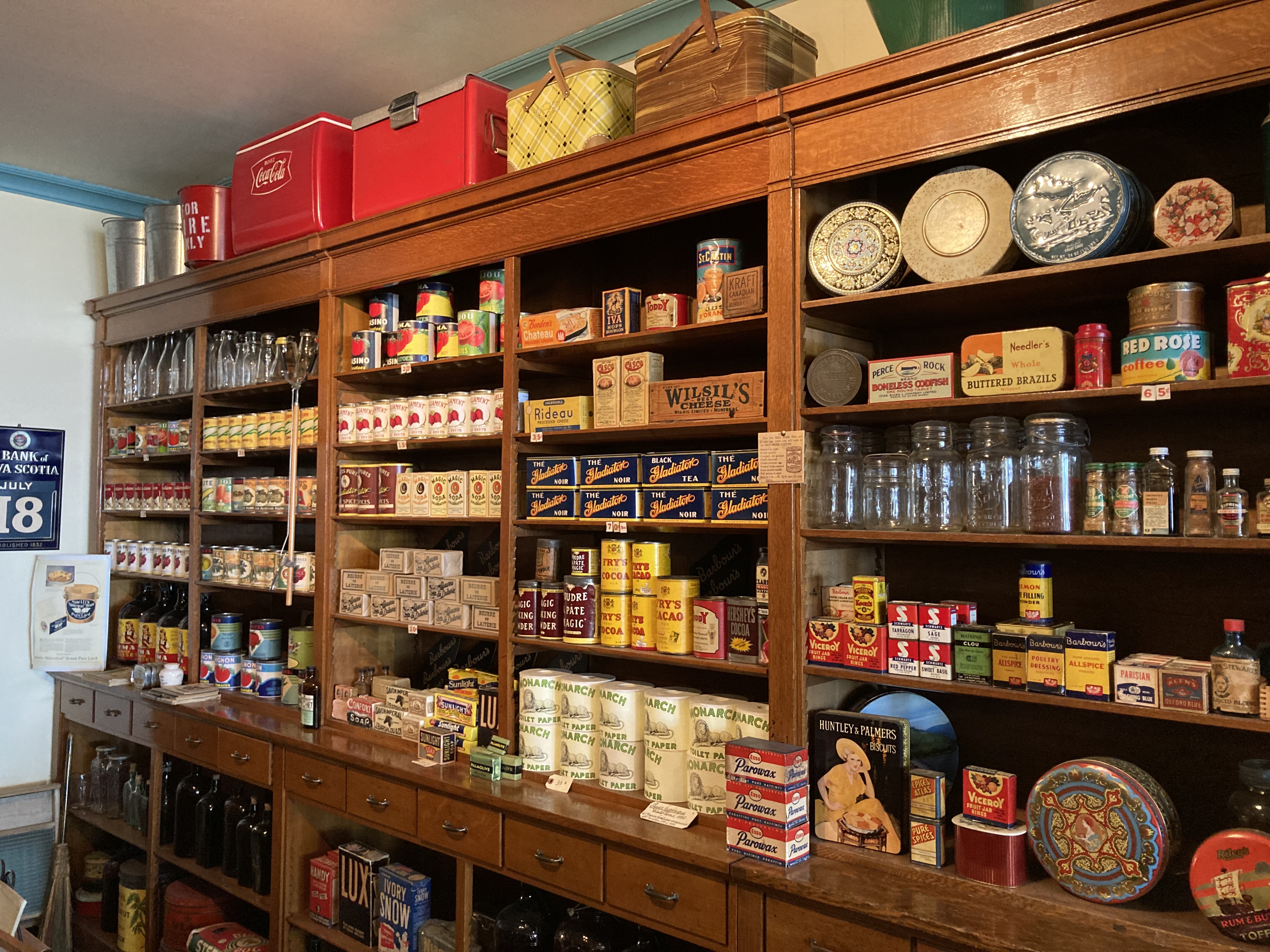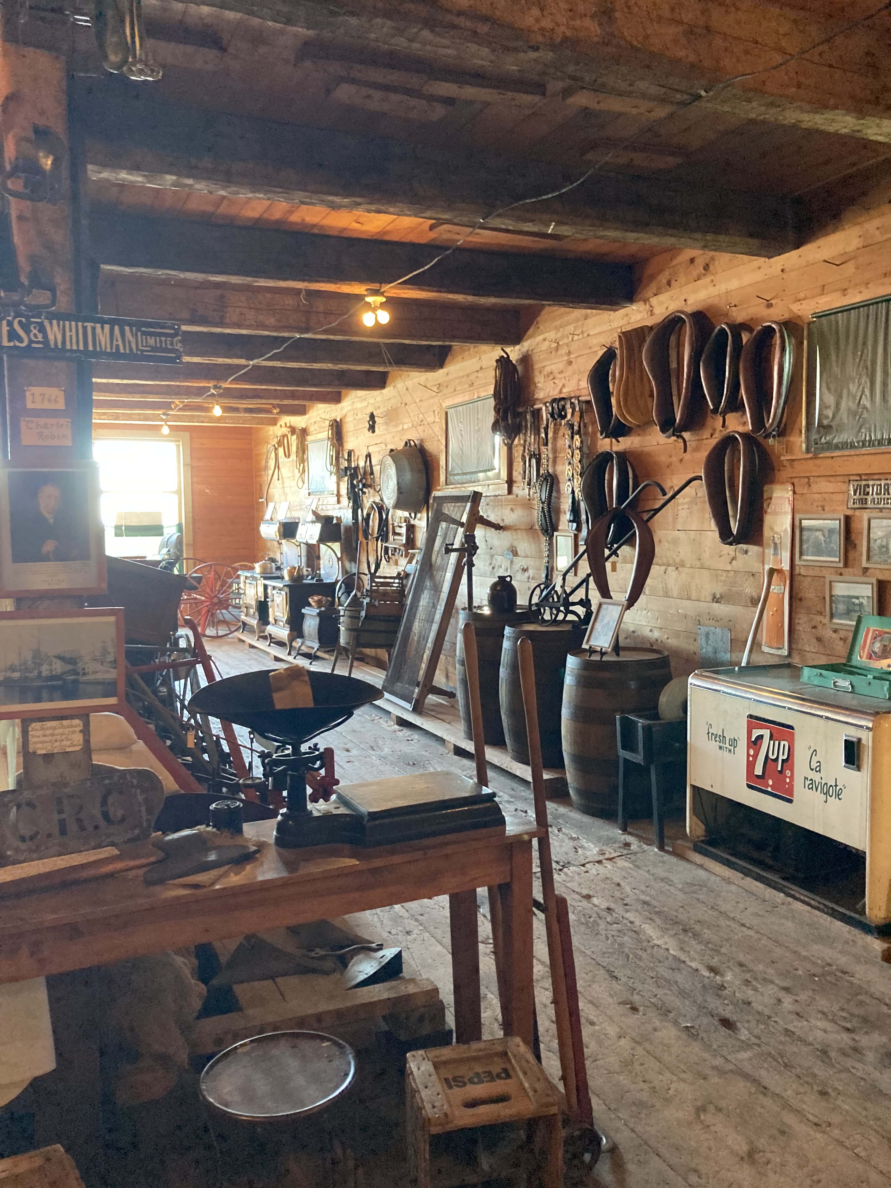 Grosse étape routière aujourd’hui. Nous avons juste sur le parcours fait la visite du Magasin général historique authentique 1928 qui se situe à L’Anse-à-Beaufils. Le magasin nous accueille comme à l’époque. La visite se fait au travers de scènes jouées par des comédiens en costume d’époque. Compter 1h30 de visite, c’est vraiment très intéressant.