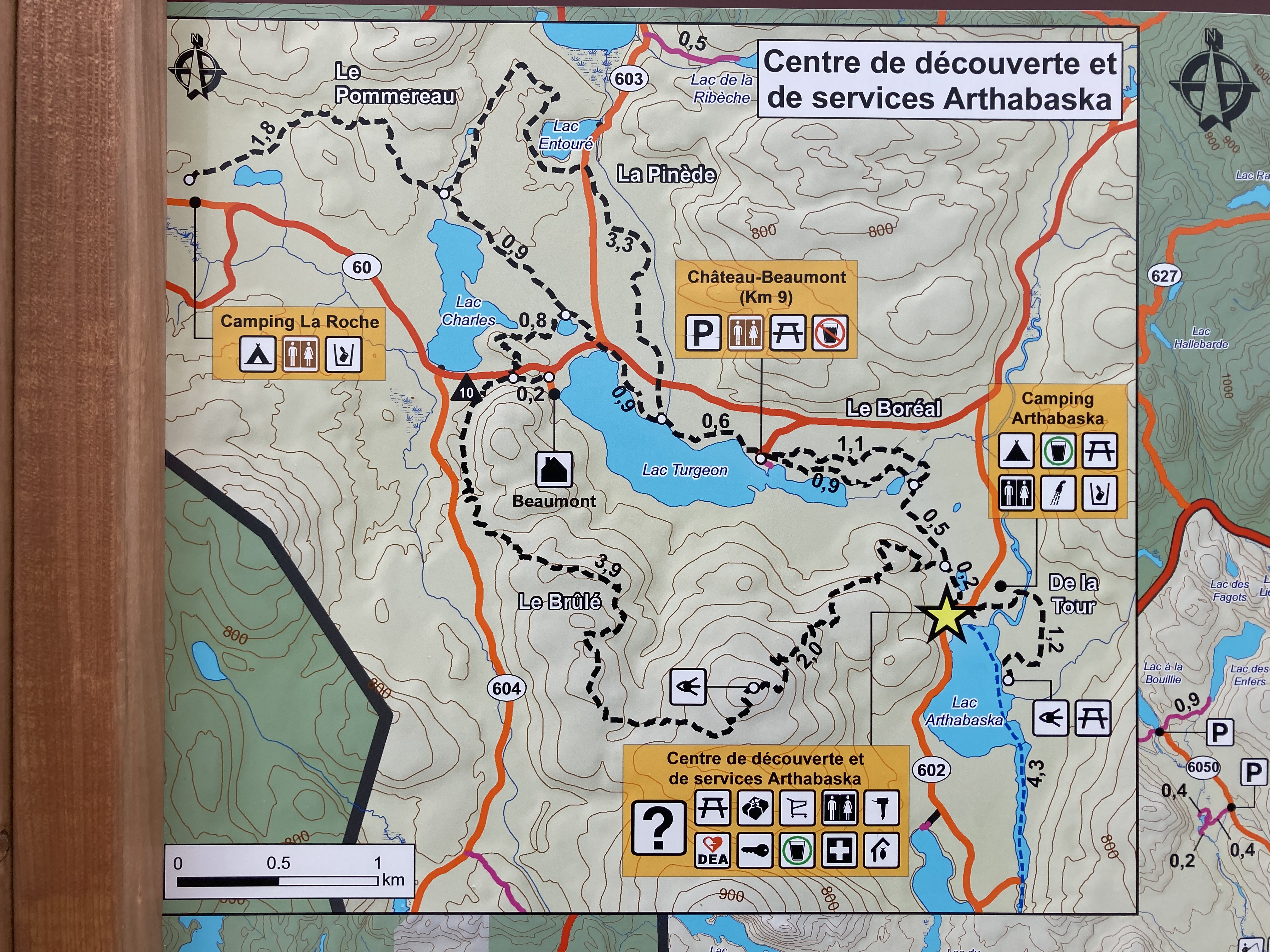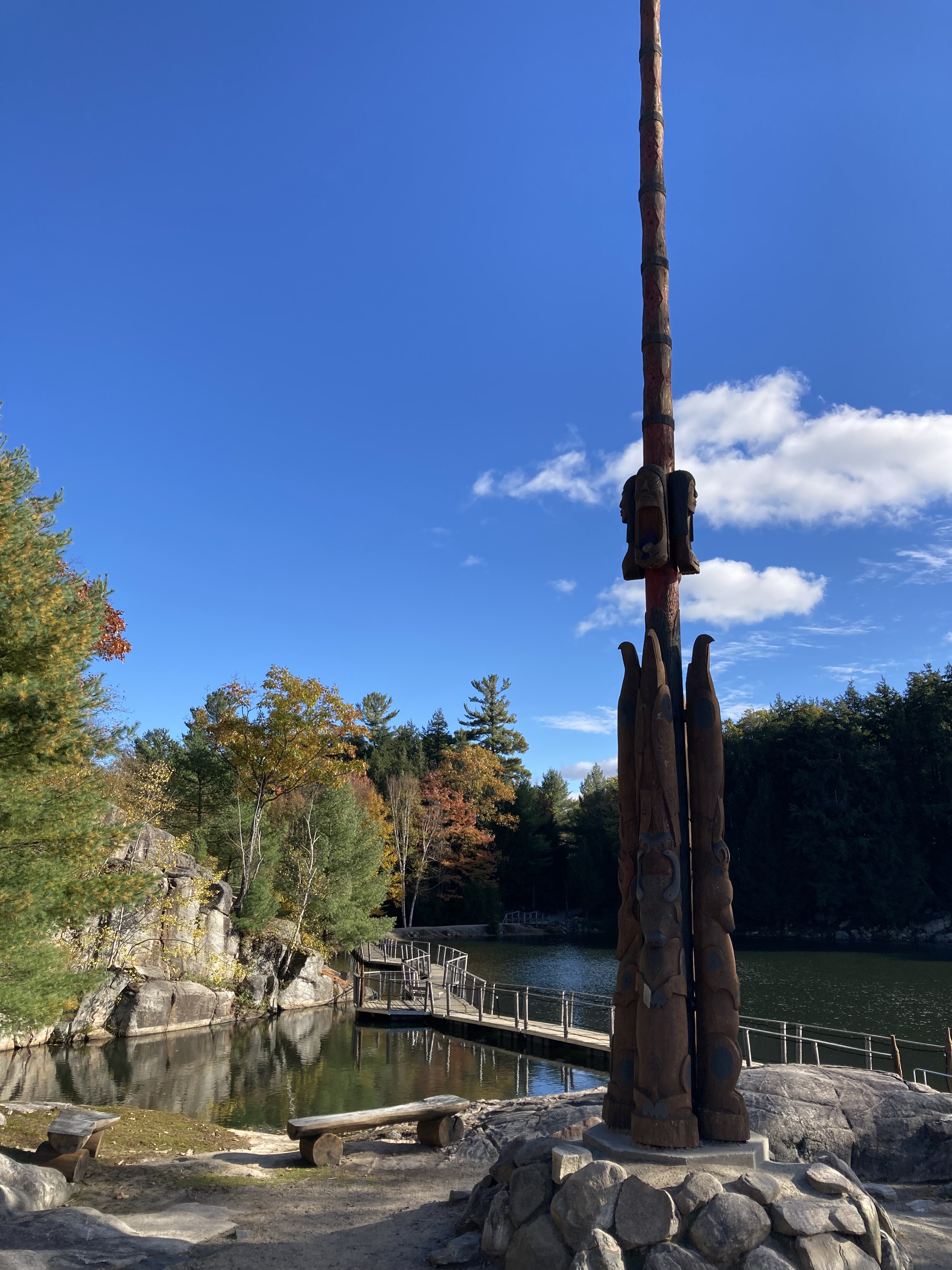 Il y a également un petit parcours de marche autour d’un petit lac avec des totems représentant les différentes tribus autochtones.