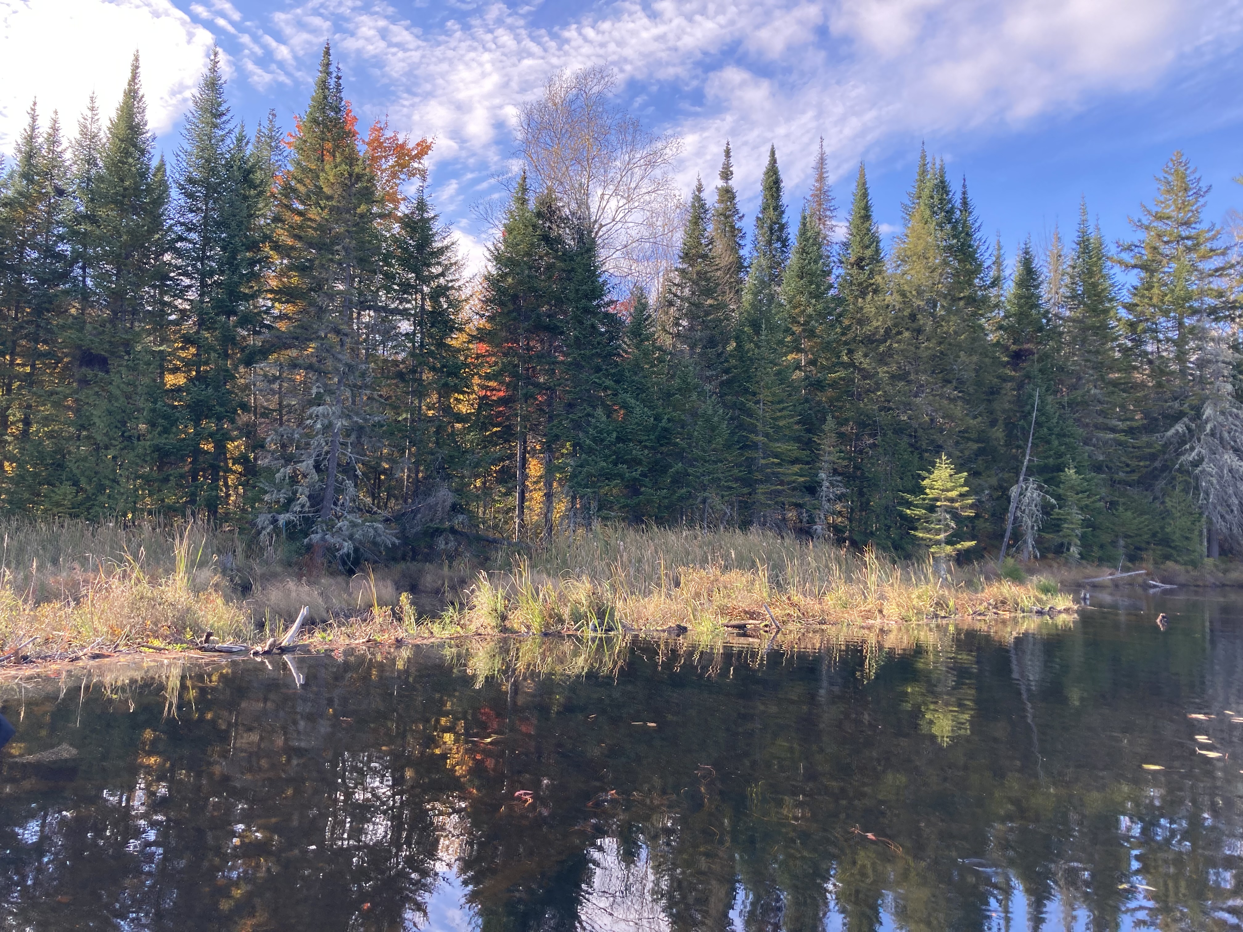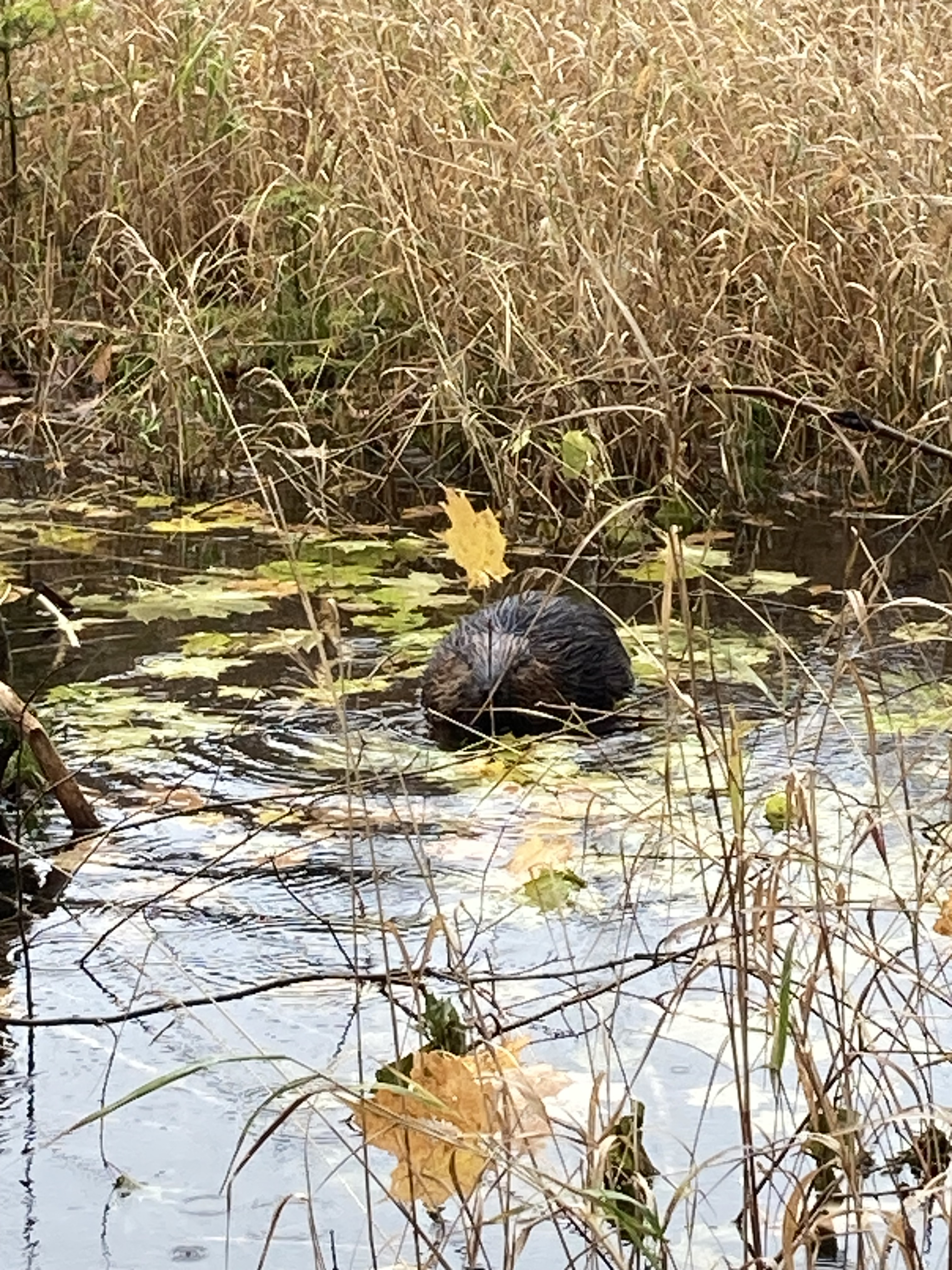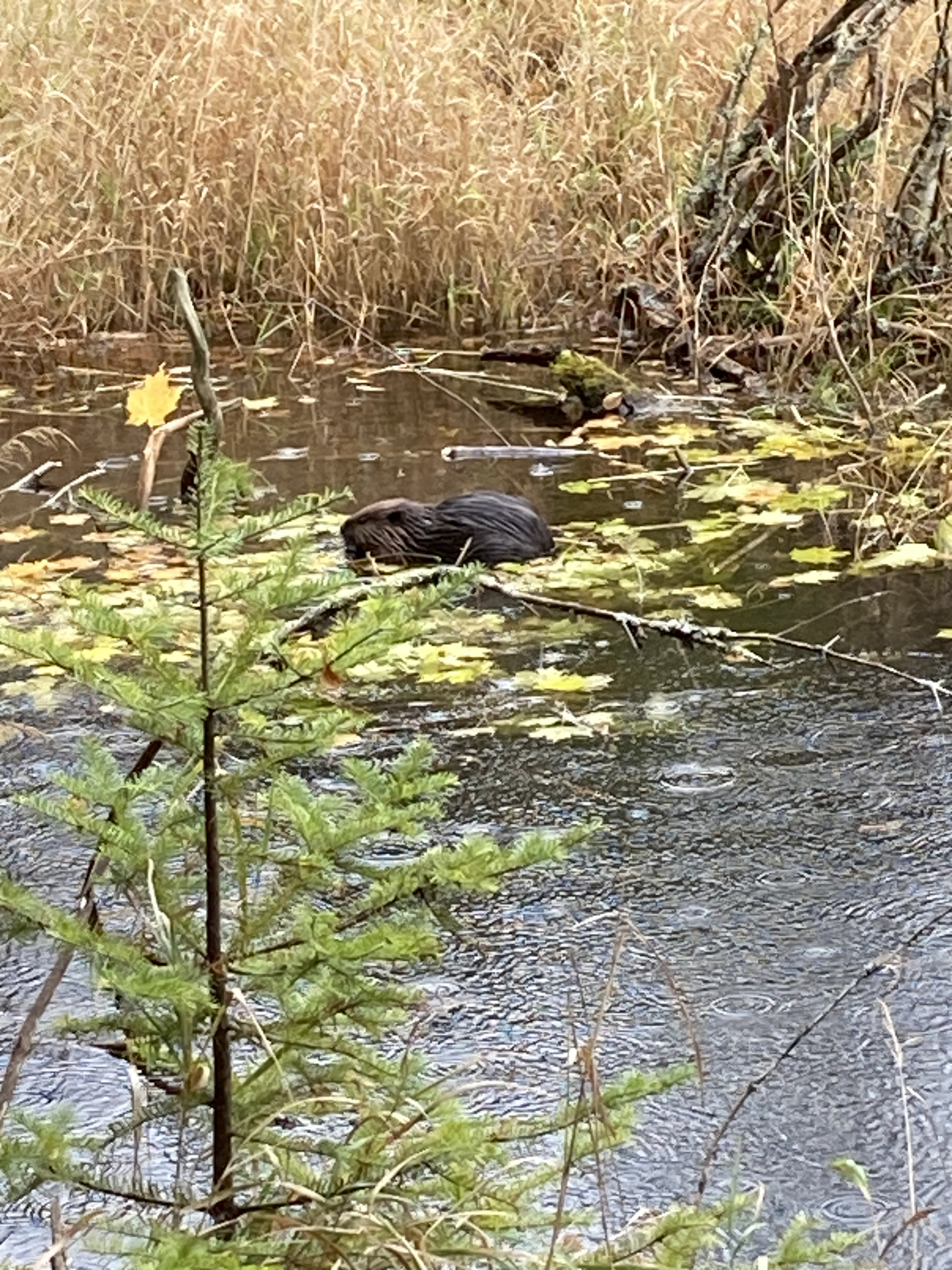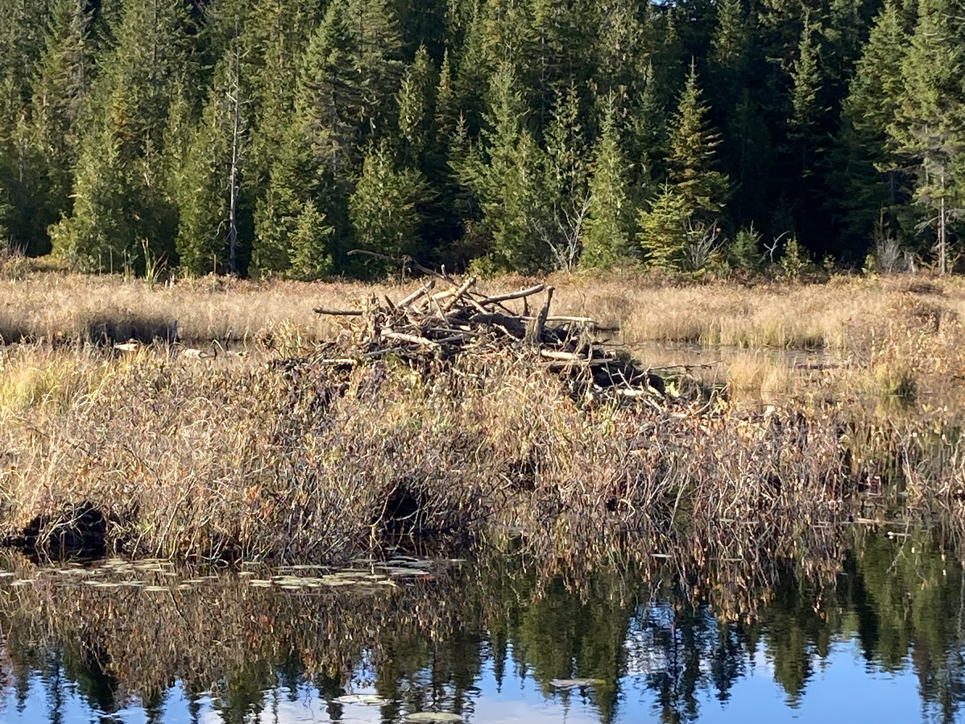 Quelques centaines de mètres avant la fin de la marche, on aperçoit un castor sur le petit lac situé après le lac des femmes, et on en entendait un autre dans les herbes. On est resté plus de trente minutes à les observer : ils ramassaient des bois de bois pour les mettre sur leur cabane, ils mangeaient … c’était un moment magnifique.