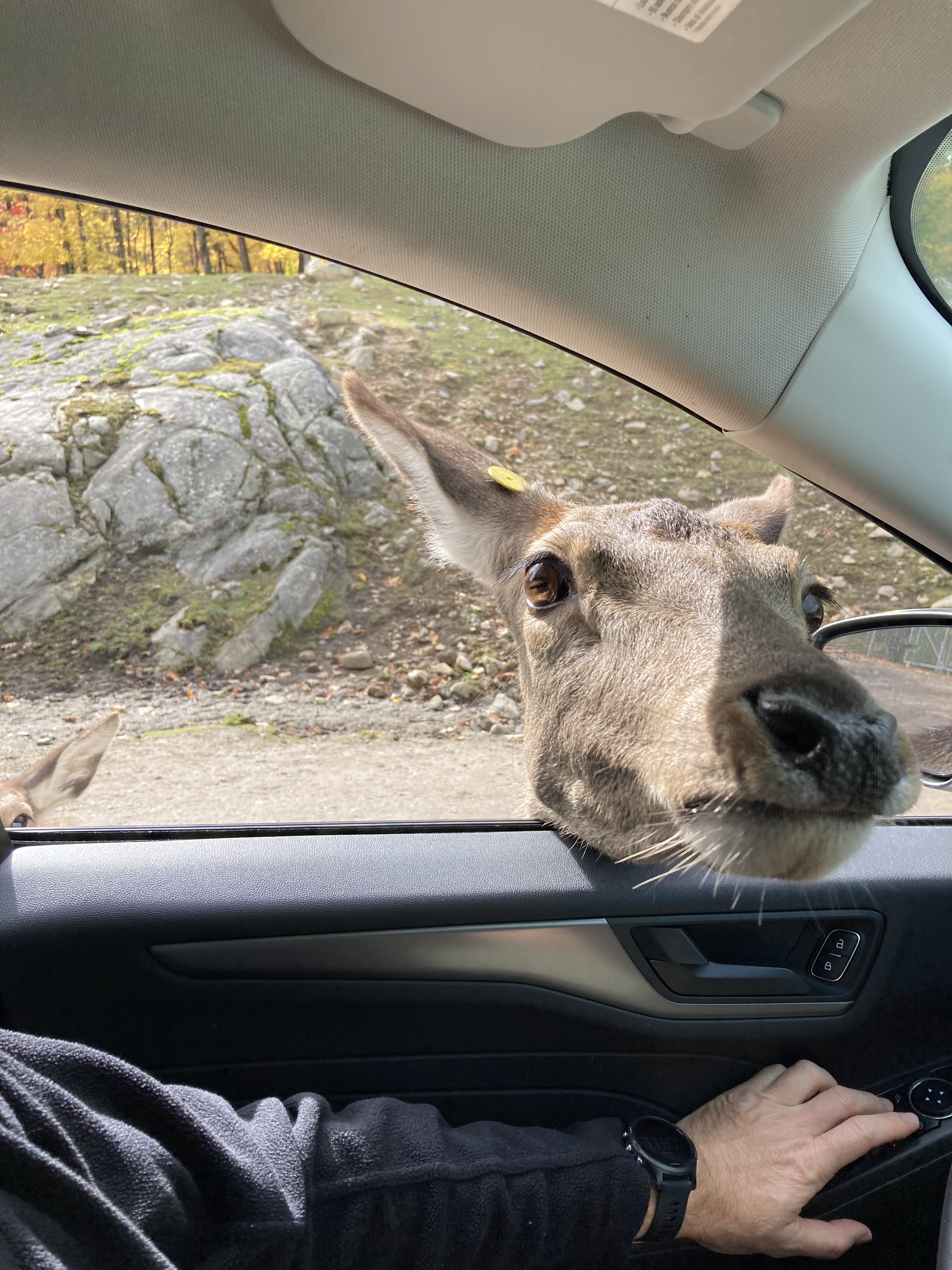On peut acheter des carottes (soit dans le parc soit en tout petit peu moins cher à Montebello) pour donner aux wapitis et aux cerfs. Nous étions en période de rut donc interdiction de donner aux mâles qui pourraient être agressifs.
