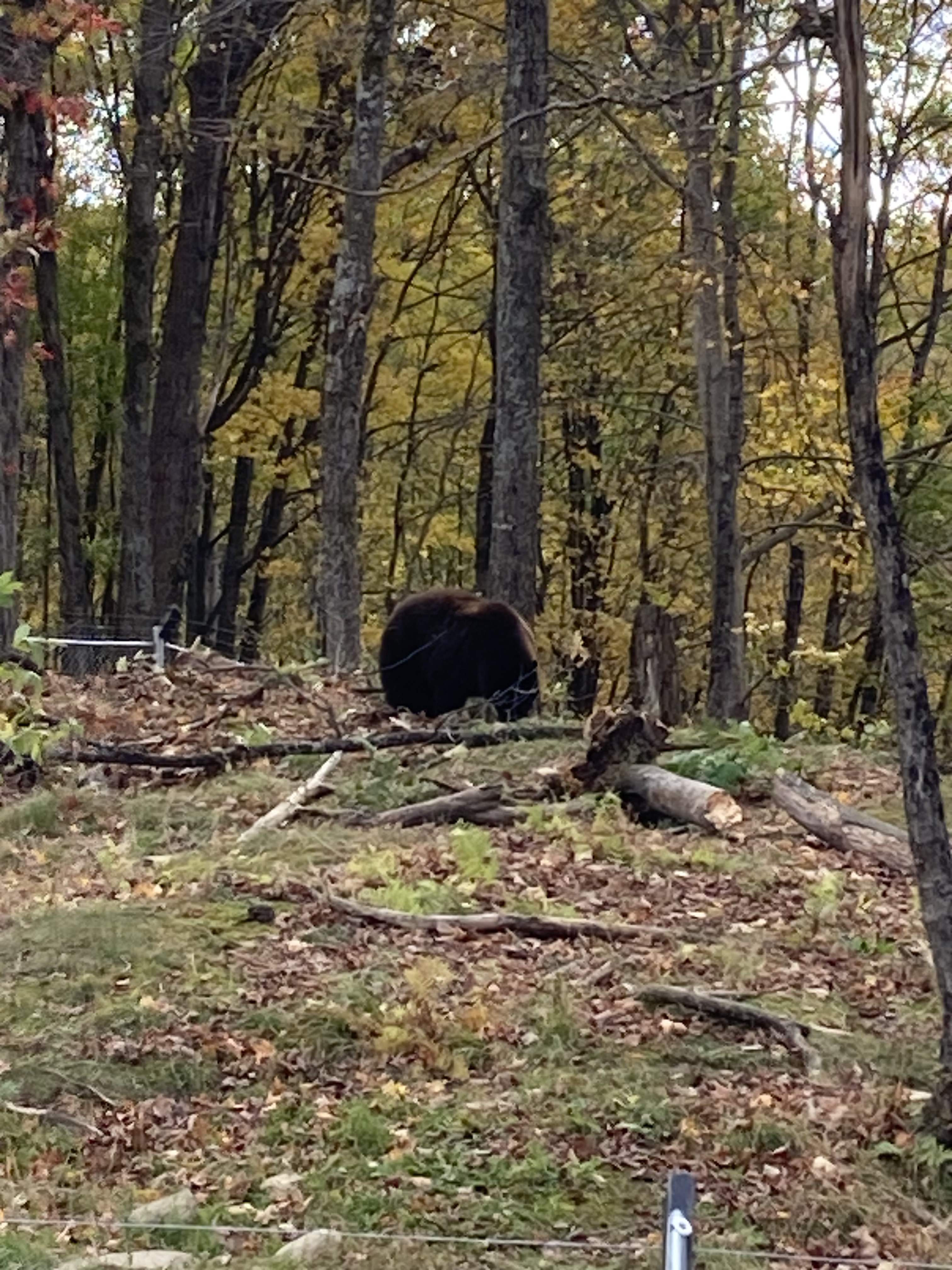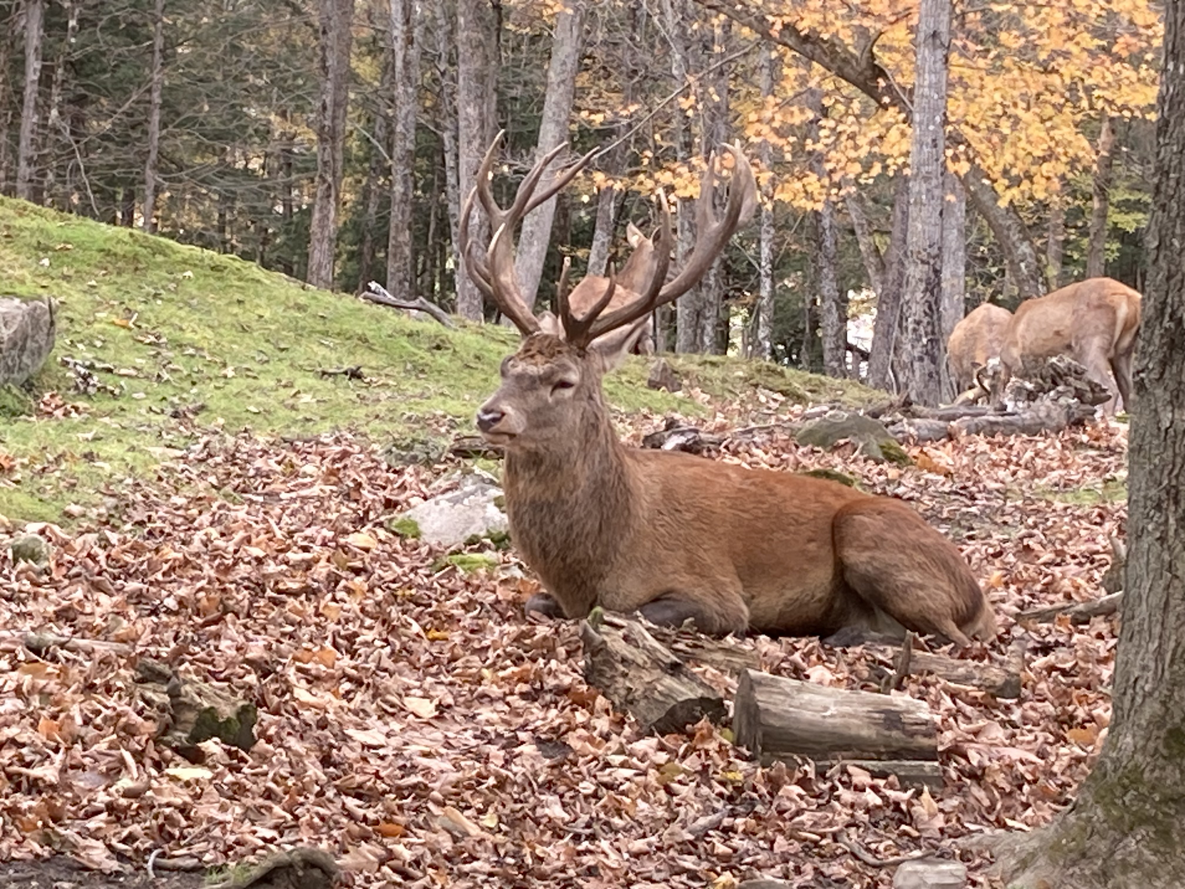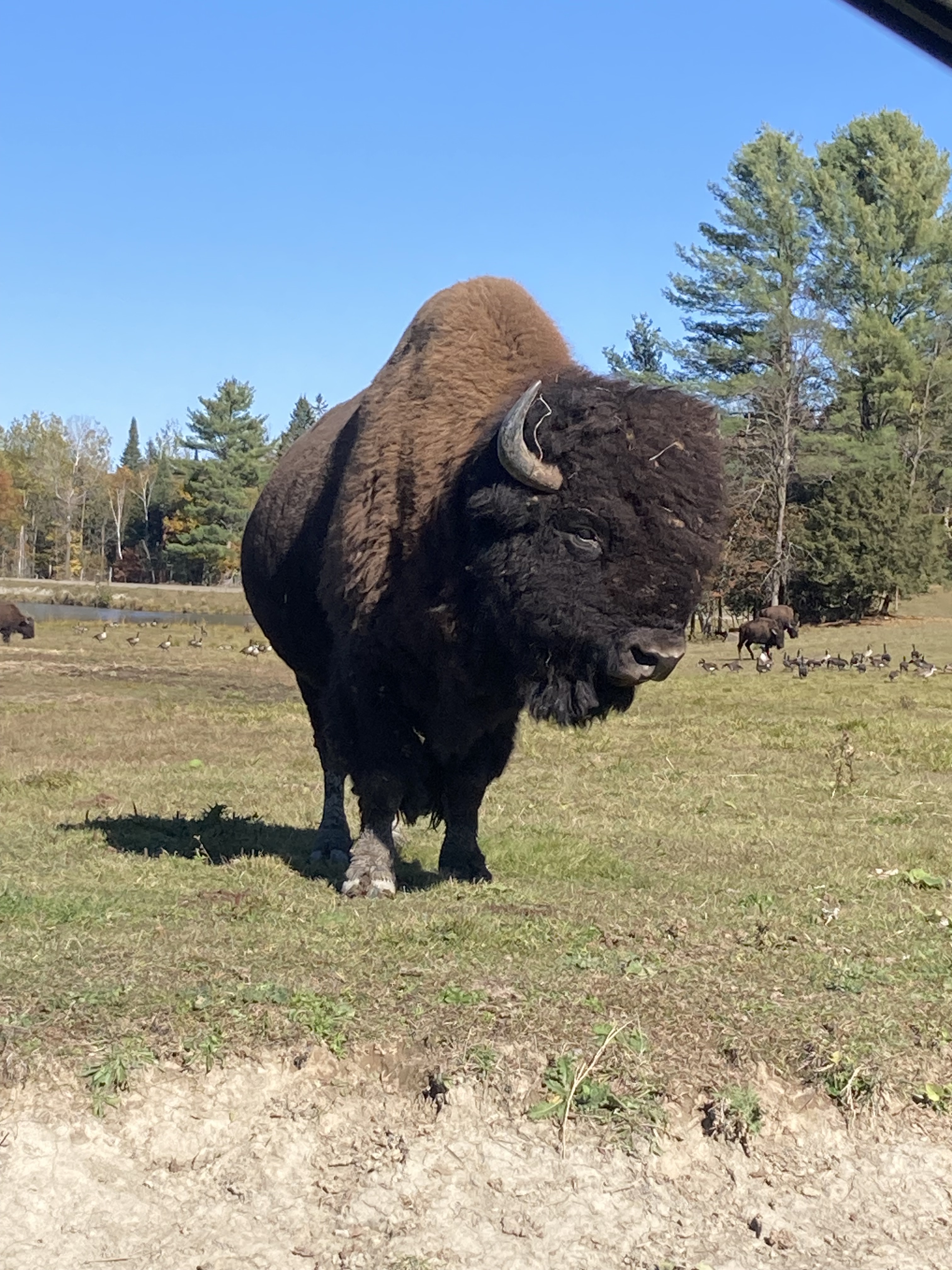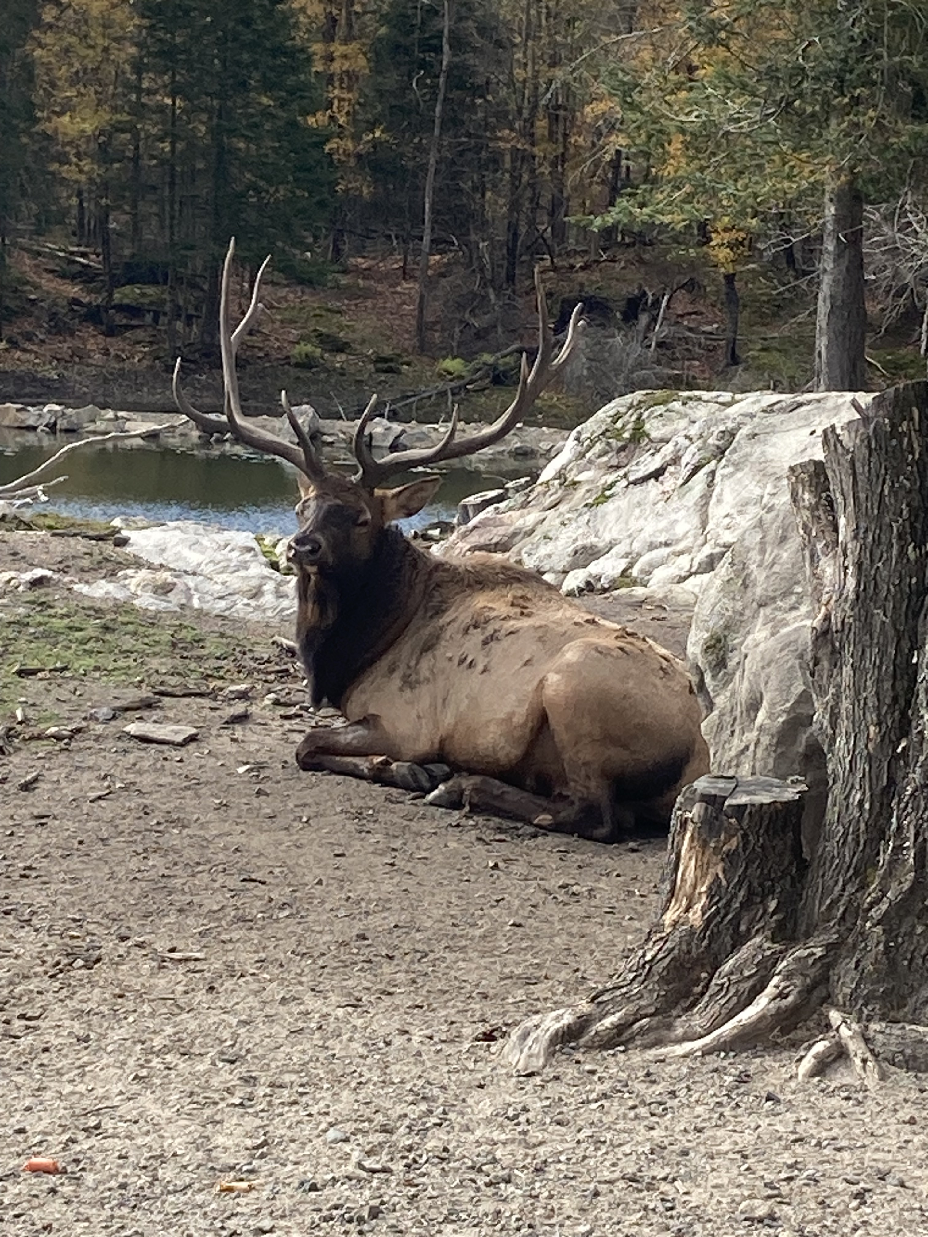 Nous sommes arrivés en fin de matinée au Parc Omega. Nous avions réservé un forfait gourmand : nuit en lodge des loups, petit déjeuner, dîner et deux jours d accès au parc. En tout nous aurons fait deux tours le premier jour et deux autres tours le lendemain. Les animaux ont de l’espace et du coup d’un tour sur l’autre on ne voit pas les mêmes animaux.