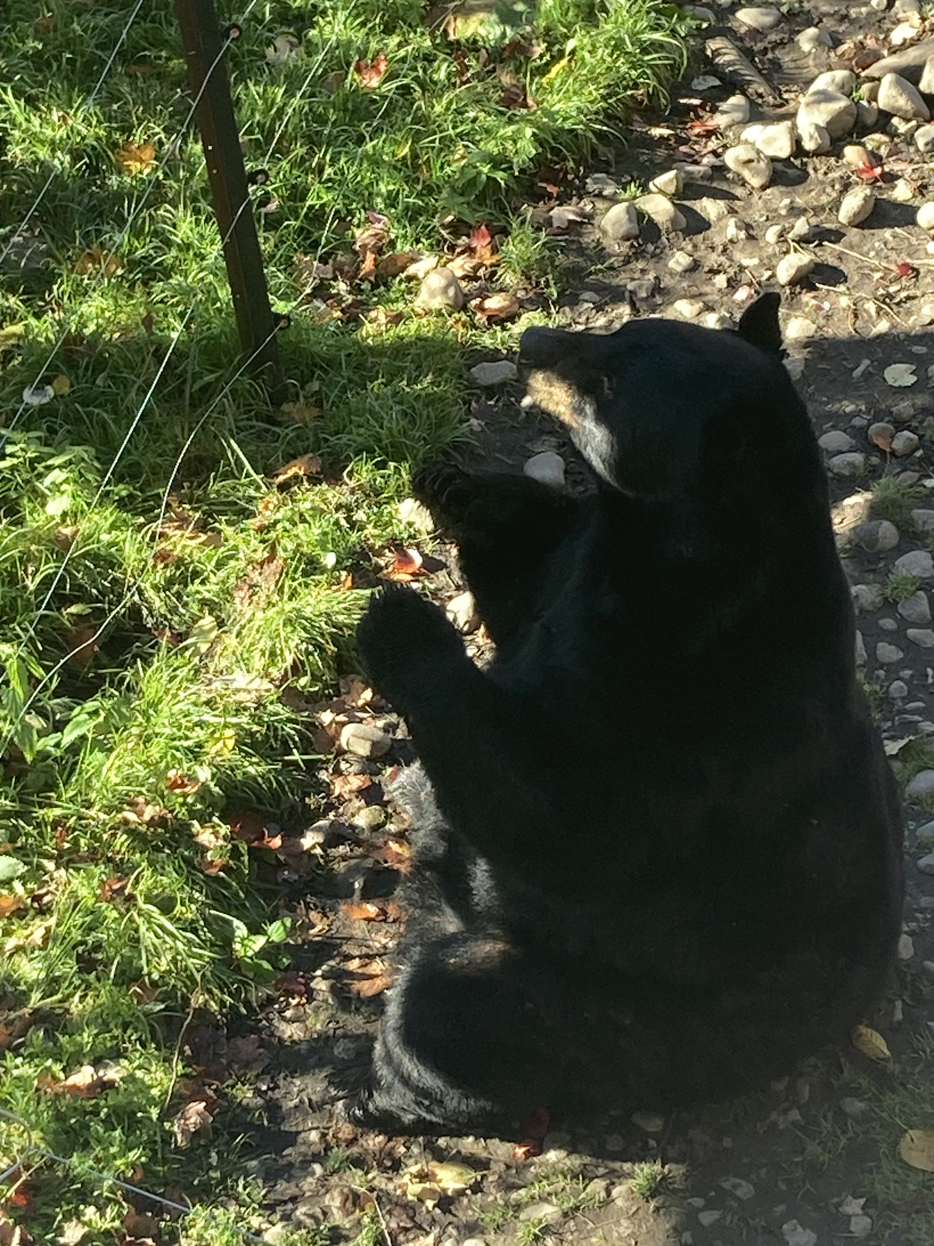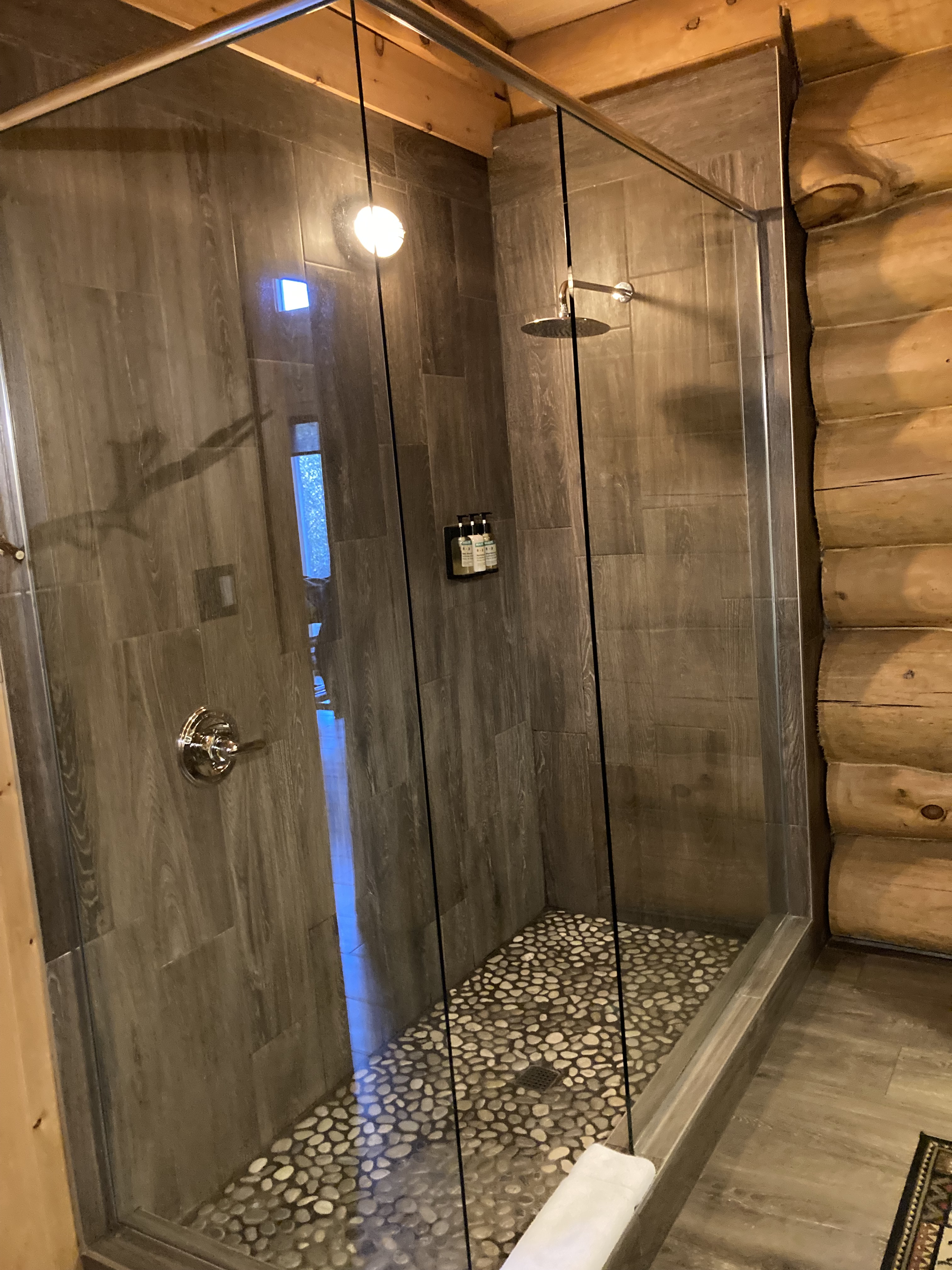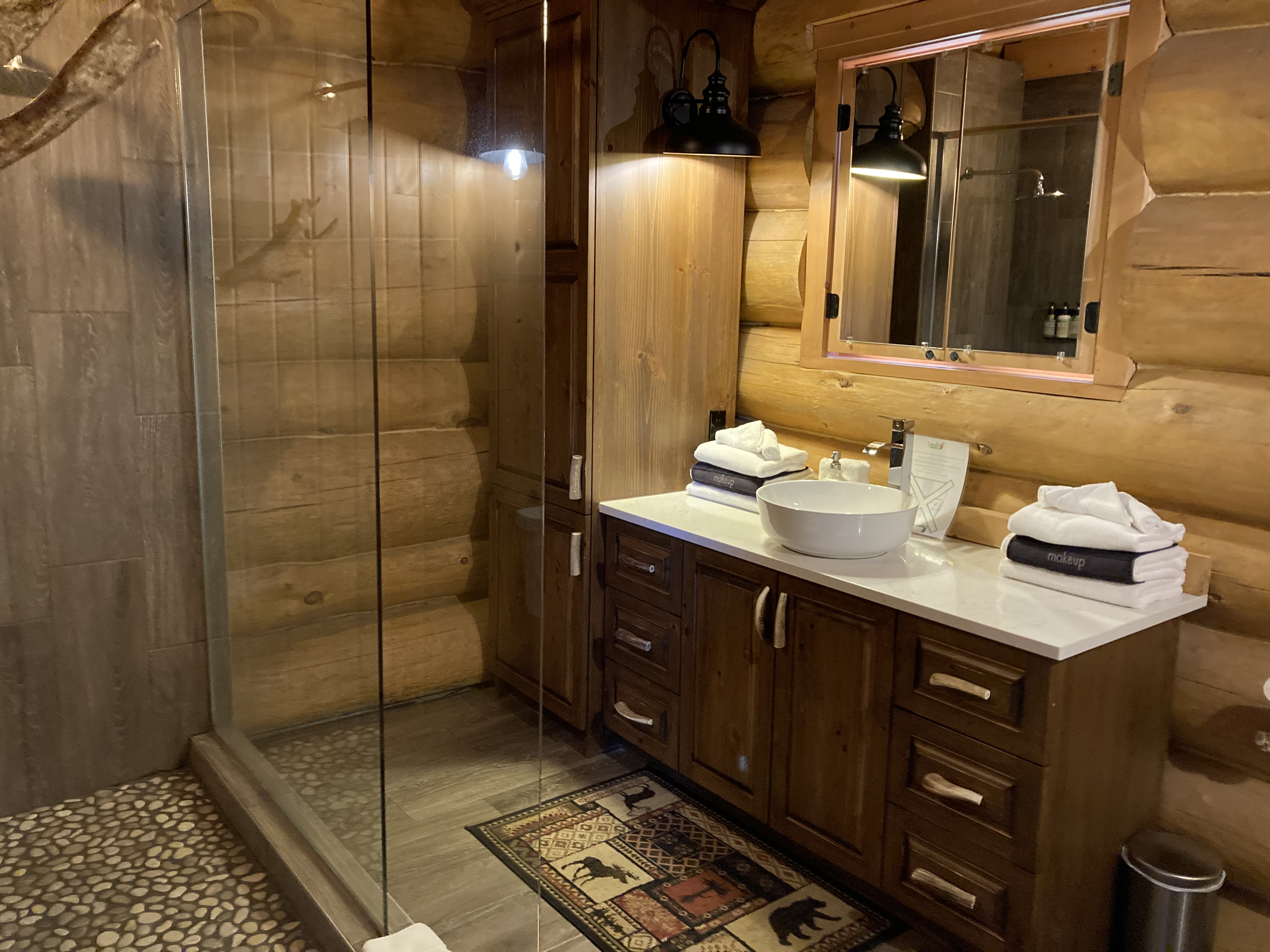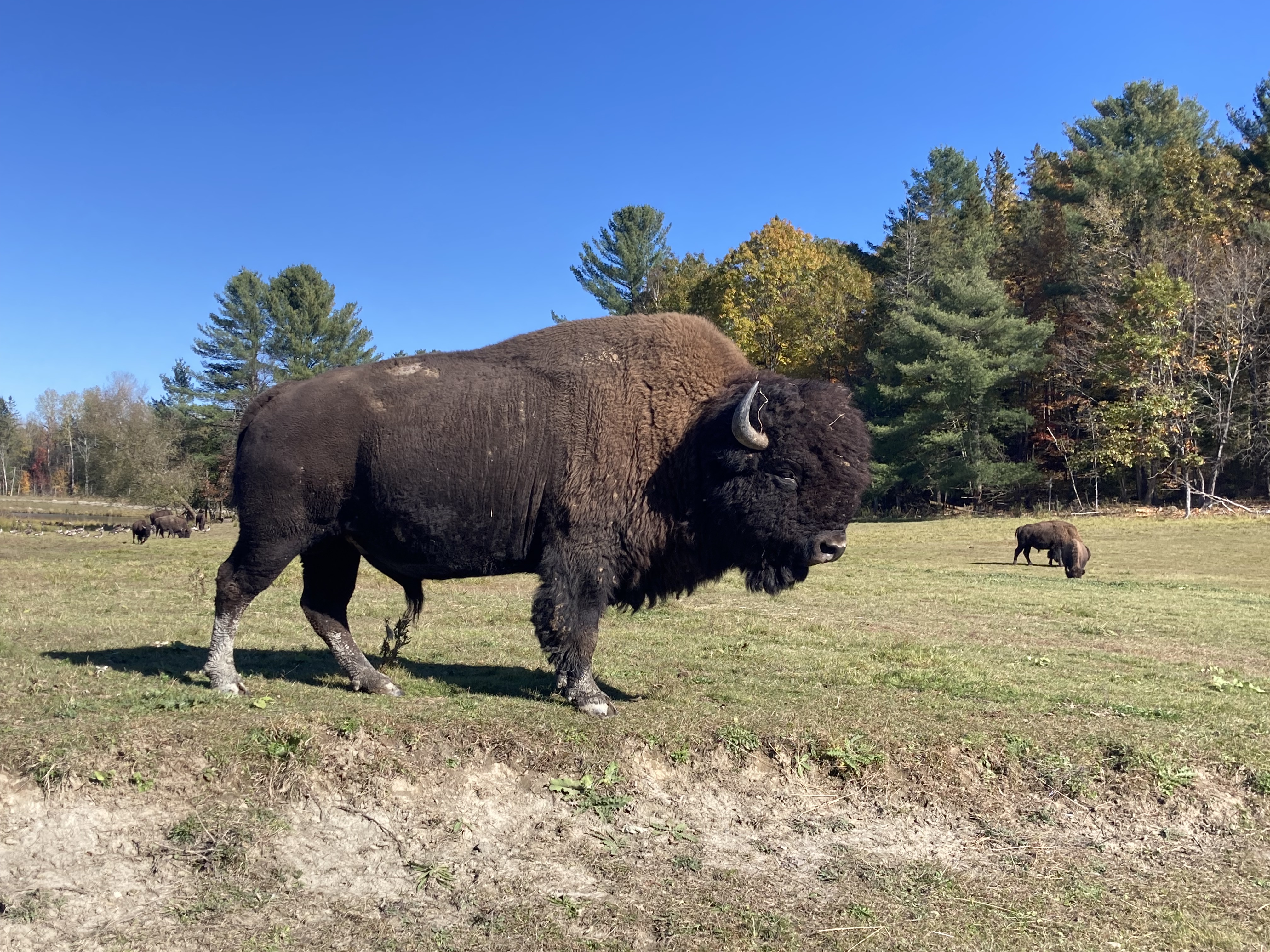 Nous sommes arrivés en fin de matinée au Parc Omega. Nous avions réservé un forfait gourmand : nuit en lodge des loups, petit déjeuner, dîner et deux jours d accès au parc. En tout nous aurons fait deux tours le premier jour et deux autres tours le lendemain. Les animaux ont de l’espace et du coup d’un tour sur l’autre on ne voit pas les mêmes animaux.