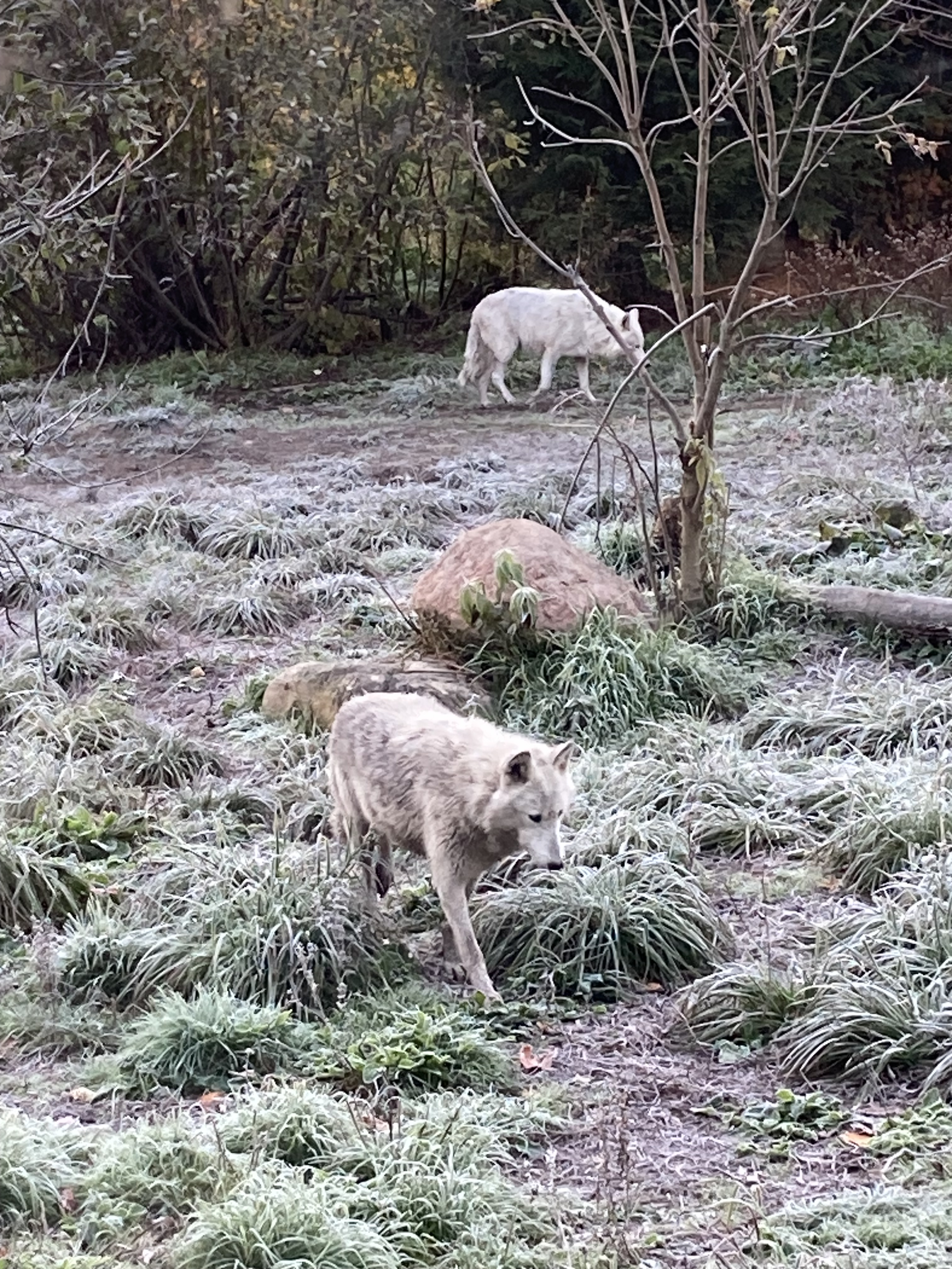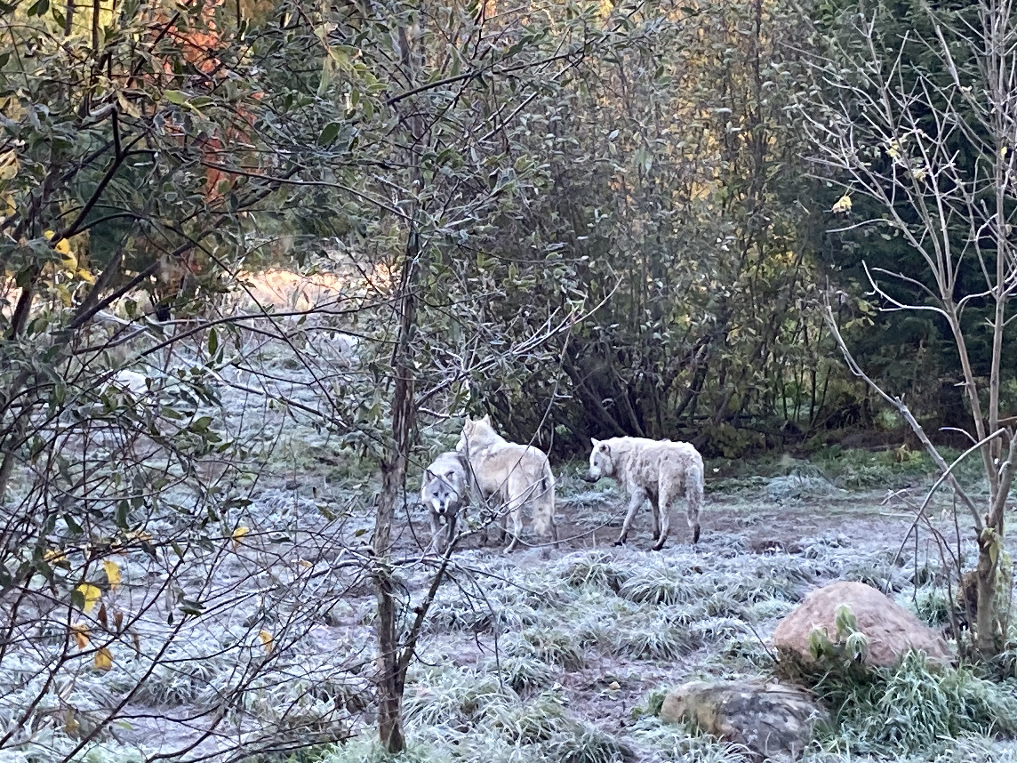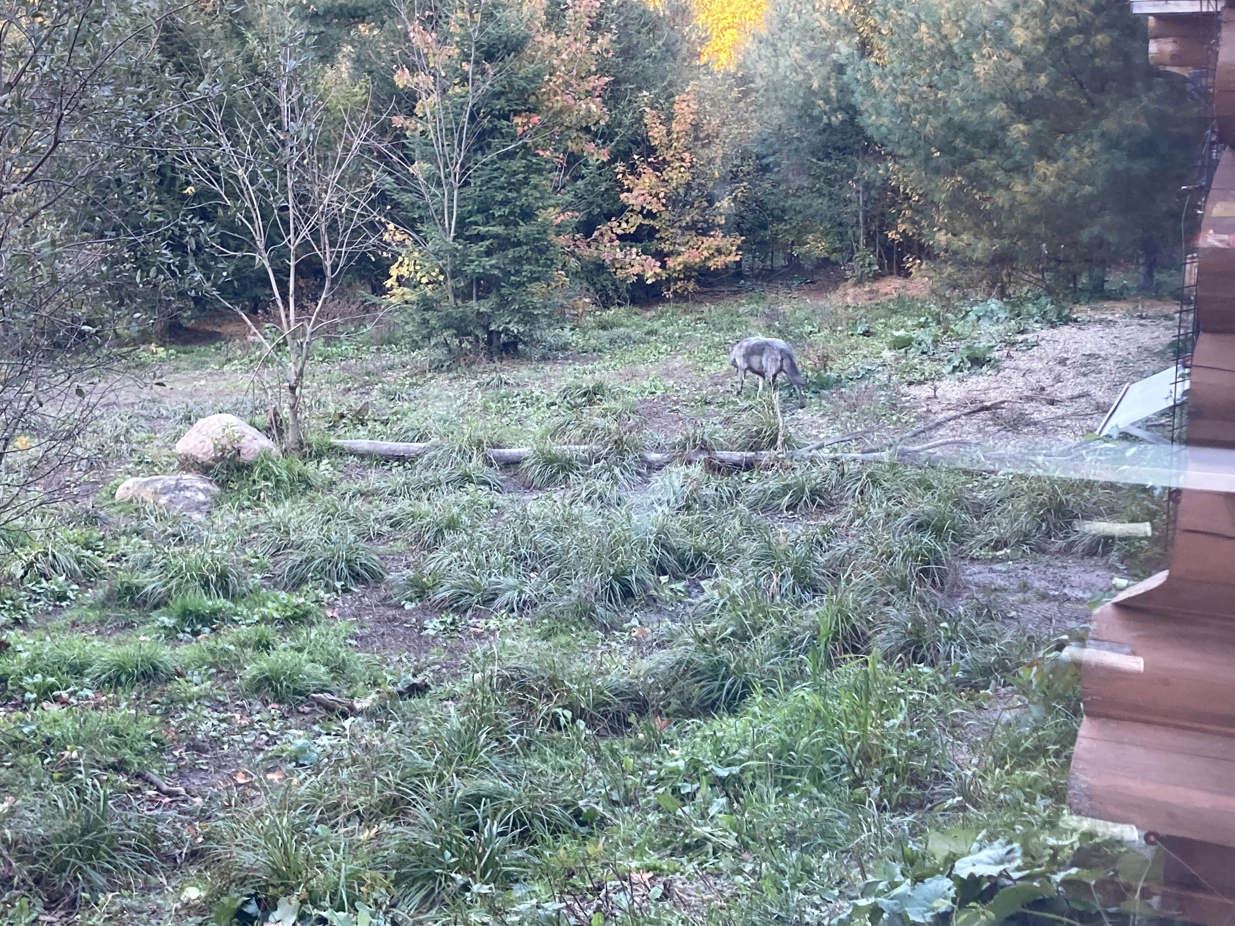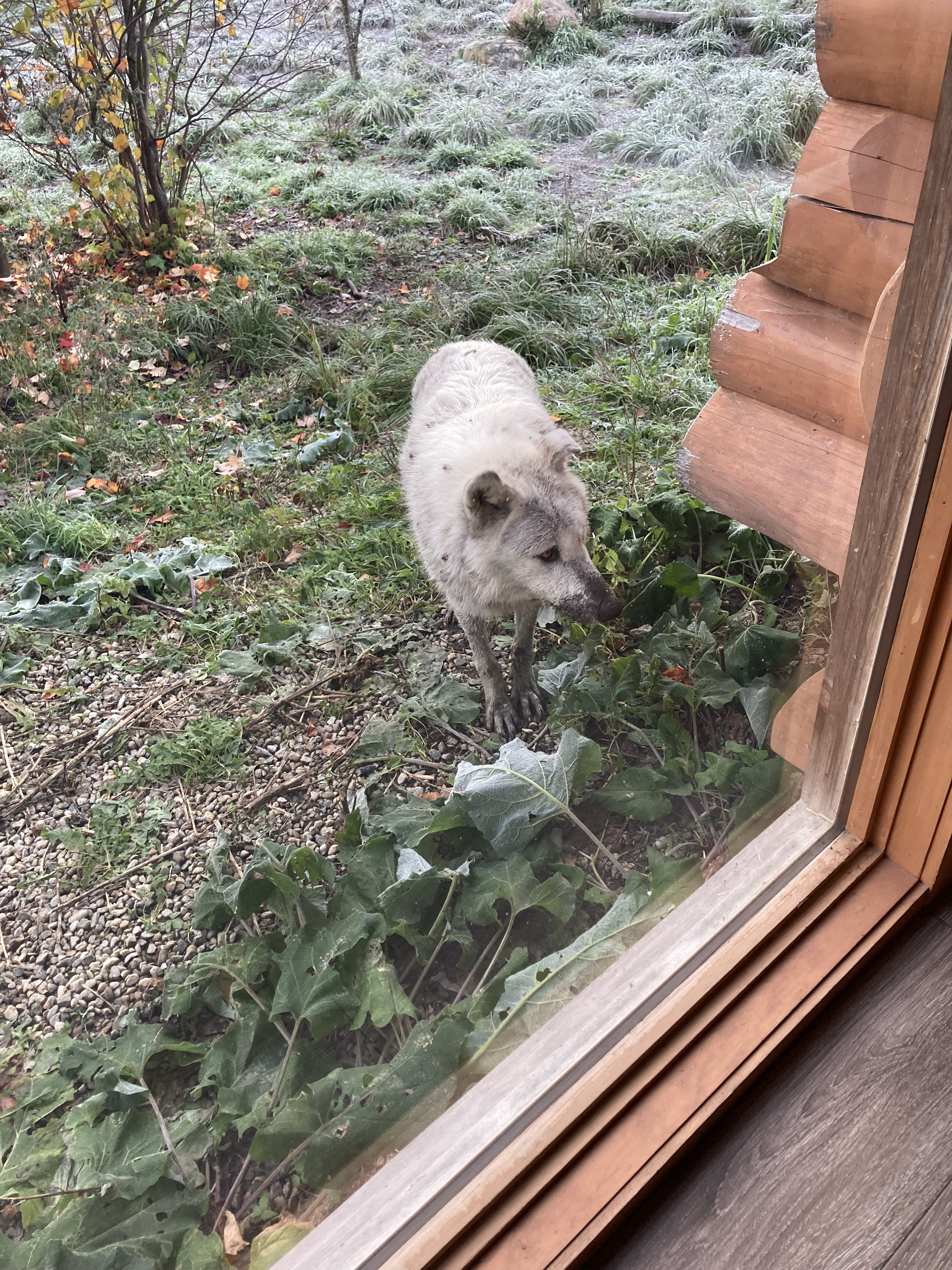 Au matin, on voit un des loups passer tout près de la vitre.