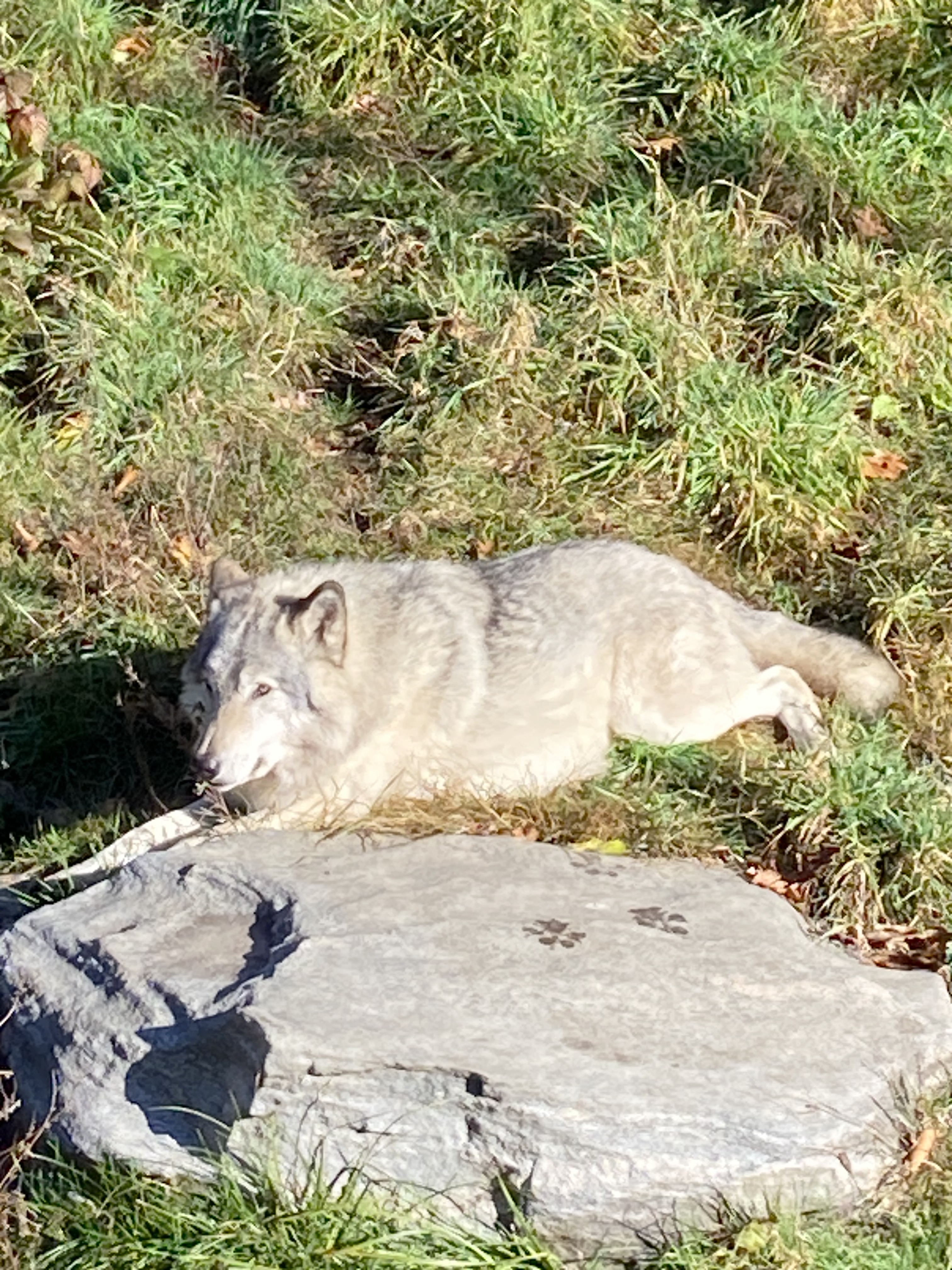 Nous avons pu participer à l’animation sur les loups qui a lieu trois fois par jour. On y voit une meute de loups à qui le soigneur envoie quelques bouts de viande en donnant de nombreuses explications sur les loups.